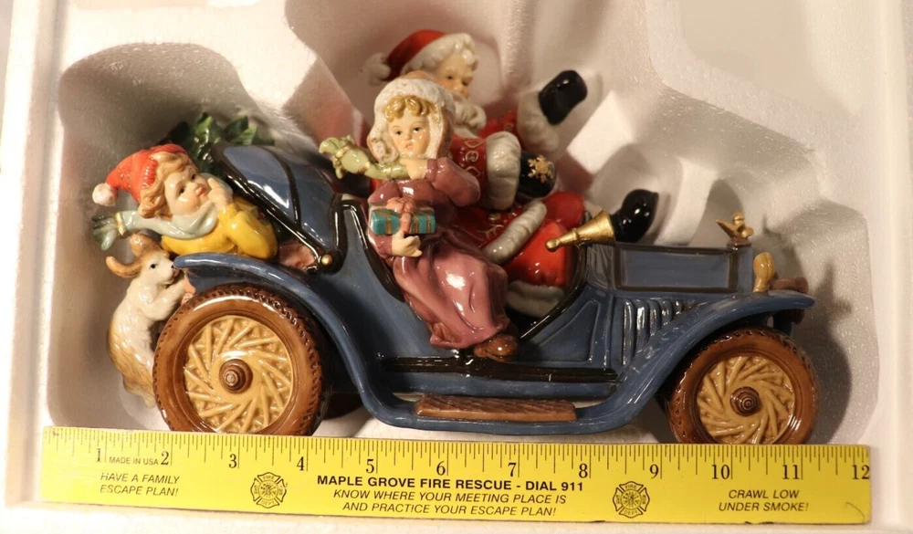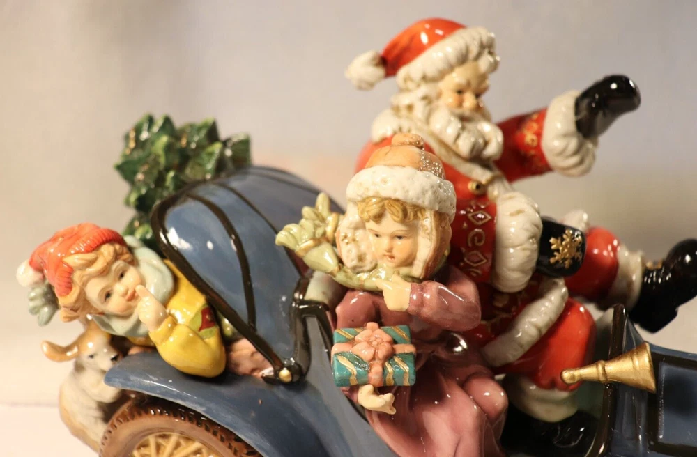 Up for Sale is Santa On Wheels in a Blue Car, making his rounds on wheels. (See Pictures) Collector`s Edition by "GRANDEUR NOEL"---2003. Beautifully done in an array of glossy colors done on Porcelain. (See Pictures) Measures almost 12 inches in length. (See Picture #10) Will be coming to you in New Other Condition--missing plastic bag. With the Original styro-foam packing with the Original Box. (See Pictures) There are 10 Close-Up pictures for you to get a good look at what you are bidding on. E-BAY, FOR IMMEDIATE SHIPMENT. WE SHIP INSURED PRIORITY, FIRST CLASS, AND MEDIA USPS MAIL WITH DELIVERY CONFIRMATION RECEIPT. WE SHIP FIRST CLASS INTERNATIONAL MAIL USPS with NO INSURANCE. WE SHIP PRIORITY MAIL INTERNATIONAL WITH INSURANCE and GLOBAL USPS ONLY! The postage for this item is $12.80 in the continental U.S.A. Other than U.S.A., e-mail for shipping rates. MINNESOTA RESIDENTS ADD 7.525% SALES TAX There is a 30 day return policy for a full refund, excluding Postage. If you are not satisfied with your purchase, please notify by e-mail that you will be returning an item. GOOD LUCK BIDDING!!!!! AS ALWAYS YOUR SATISFACTION IS A MUST!!!!!!!!!!!!!!