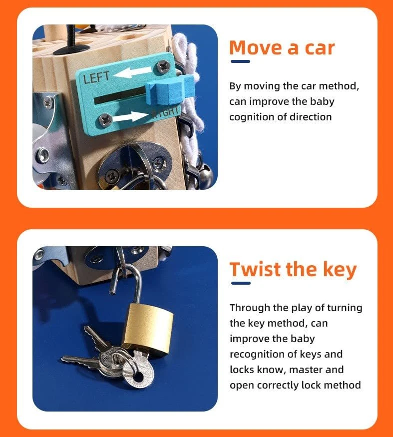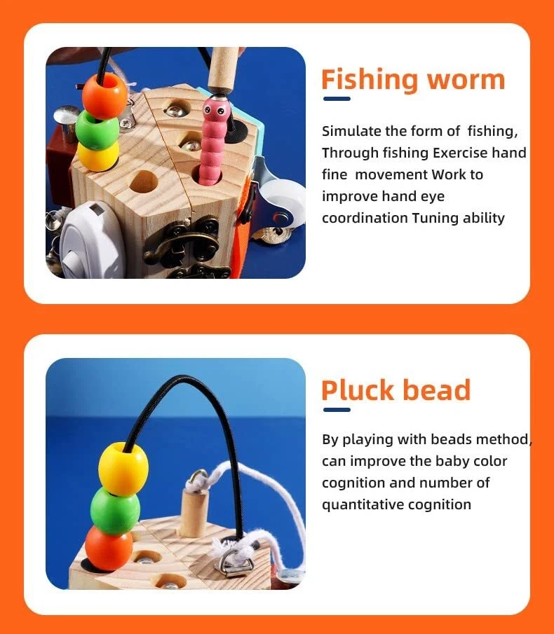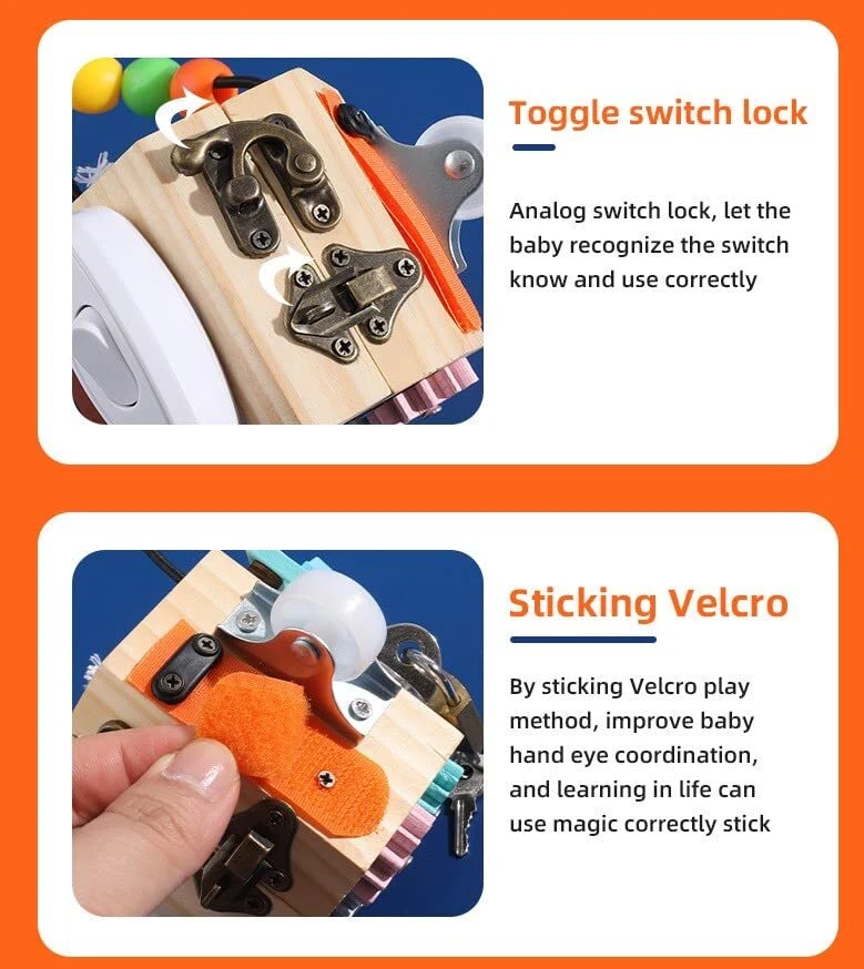 PORLPOEK Busy Cube for Kids Sensory Busy Board Travel Toy 14 in 1 for Toddlers ,Handmade Activity Cube Autism Sensory Toys for Educational Learning,Fidget Board Montessori Toys for Babies Gift busy cube 14 in 1 Activity Cube: Combines 14 different basic life skills activities for learning and playing, lock with key, gear, switch, velcro, buttons,mirror,sticker,shoelace,bell etc,Keep your children busy and entertained for hours, while develop their fine motor skills, encourage scientific thinking and problem solving. Learning Made Fun: Safe preschool learning activities for quiet play and develop fine motor skills, dressing skills, finger dexterity, and cognitive skill. And these fun activities designed according to real life can teach kids some basic skills and improve hand-eye coordination,fine motor skills and critical thinking skill. Safe and handmade:This activity cube is well made solid wood,Installed firmly and more durable, The activity accessories above are manually installed,To protect small hands and enrich the experience, The busy cube for baby surfaces with smooth edges without burrs. Perfect Travel Toys: The sensory toy is small size but with many active sections,its lightweight and not take too much space. However, there are 14 different activity sections available, Perfect Montessori toy to keeps kids busy while on car, airplane, travel or settings needing quiet and entertained without screens. Develops Basic Life Skills:Children can learn everyday skills from this busy cube such as using switches, unlocking with keys, tying shoelaces, gears and more. Develops children's cognitive, attention and learning skills. Shipping from the USA All of our products are shipped from the USA, ensuring quick delivery to your destination. Payment We offer the following payment methods: PayPal, credit card, bank transfer, and eBay's secure payment system. Free Shipping & Free Returns Shipping within the USA is FREE. Additionally, any return is absolutely free for you. Risk-Free Purchase You have the option to return an item within 30 days without any justification. We cover the return shipping costs! Fast Shipping We ship immediately upon receipt of payment. Generally, the package is delivered within 2-3 days in the USA. If it takes longer, we will contact you. Quality and Costs Made in Europe, USA, China No customs fees or additional charges Total satisfaction guarantee Invoice with declared VAT available upon request in .pdf format Feedback Your feedback is very important to us. After you pay for your purchase, you will automatically receive positive feedback from us.