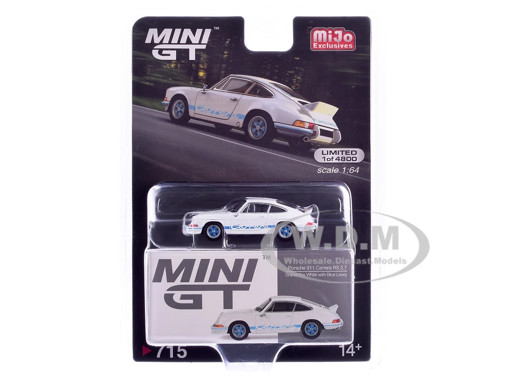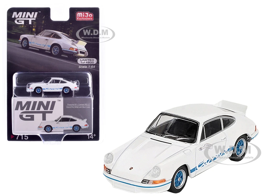 SAVE WHEN BUYING MORE!!! Buy as many items as you wish and we will ship them for one low shipping cost to 48 continental U.S. states physical addresses. Example: Shipping cost for most 1/24 scale items is $10, for 1/18 scale items is $12. If you use Add to cart button and purchase 5 items in 1/24 scale and 5 items in 1/18 scale, your shipping cost will be only $12 for 10 items. In order to request combined shipping for signed in desktop users: Please use Add to cart button for desired items, click Go to cart button and press Request total from us before paying and we will send combined shipping invoice shortly. If checking out as a Guest or using a mobile version, please use Add to cart button then click Go to cart button , press Go to checkout button, request extra shipping refund in Message to seller section and finalize payment by pressing Confirm and pay button. We will refund extra shipping cost shortly. DESCRIPTION: Brand new 1/64 scale diecast car model of Porsche 911 Carrera RS 2.7 Grand Prix White with Blue Stripes and Wheels Limited Edition to 4800 pieces Worldwide die cast model car by Mini GT. Brand new box. Authentic detail. Real rubber tires. True-to-scale detail. Detailed wheel design. Detailed under-chassis. Soft rubber side mirrors. Detailed interior, exterior. Comes in a blister pack. Officially licensed product. Die-cast metal body and chassis. Dimensions approximately L-2.5 inches long. Manufacturer's original unopened packaging. PAYMENT INSTRUCTIONS: We gladly accept paypal. Tracking info is free upon request. SHIPPING INFO: We do combine shipping cost for two or more items purchased. Please check shipping and payment section. In order to receive combined invoice for multiple purchases, please purchase items and let us know when you are done shopping, so we can send you one combined invoice. We can only combine shipping cost if items paid in one transaction. Dear Valued Customer! We appreciate your business. BUY WITH CONFIDENCE Fast Order Fulfillment 99% of orders are shipped within 24 hours or sooner. Simple Return Policy Thirty days simple returns. More than 10 Years of Experience Family owned and operated, we’ve had the experience of selling online for more than 10 years. Satisfaction Guaranteed! Our feedback says it all. And now, we hope to have the chance to prove we are the best to you! Competitive Pricing and Unrivaled Selection We are the number one direct distributor of diecast model cars in the USA, so we are able to provide very competitive pricing. Our stock selection is unrivaled with over 4,500 different items. Quality Shipping & Handling We package all our orders with care using bubble wrap to protect models from damage in transit. Each model that has a fragile window box is covered with carton protection. Excellent Customer Service Our customer service is second to none with thousands of returning, satisfied customers from all over the world.