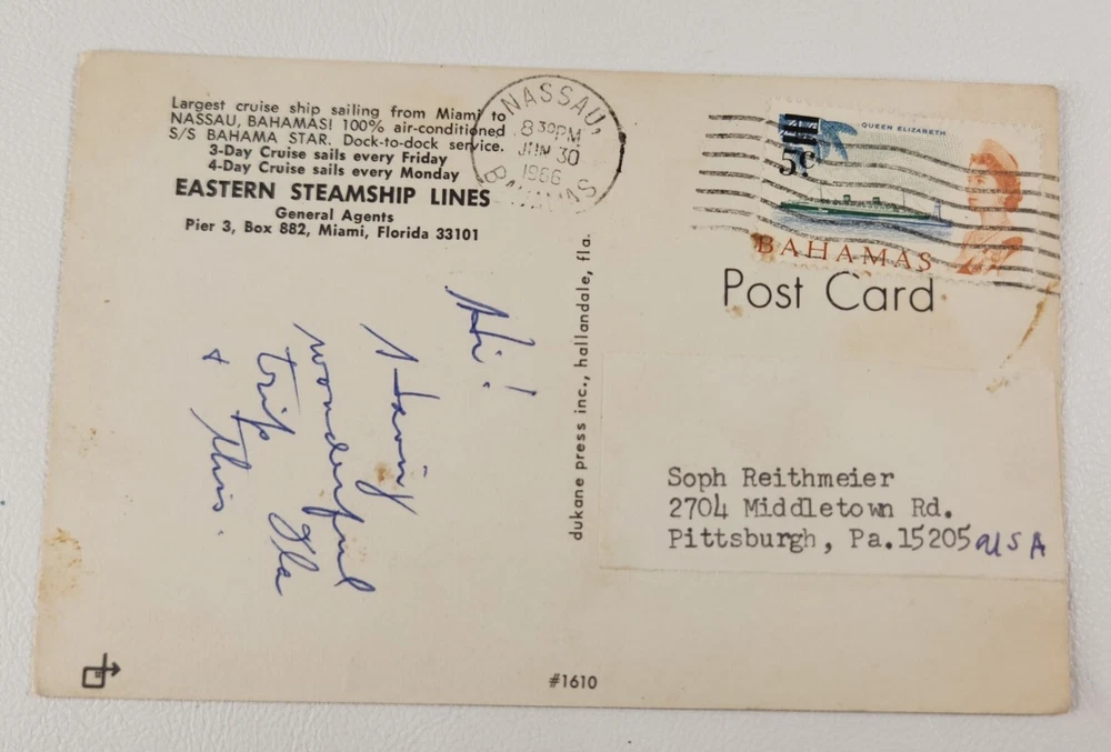 Postage Condition: Posted Features: Chrome Type: Printed (Lithograph) Subject: Cruise Liner Era: Photochrome (1939-Now) Theme: Advertising, Transportation, Travel