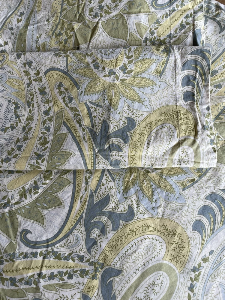 King size Pottery Barn duvet cover in Sienna Paisley and 2 matching Euro pillow covers. All in great condition, very gentle use with no stains/holes/tears. The duvet cover has ties in corners to secure the duvet; all buttons present on closure.
