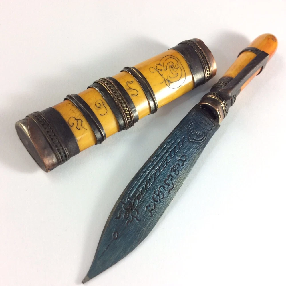 Luang Por DERM's Knife Amulet (มีดหมอ หลวงพ่อเดิม วัดหนองโพ) Amulet Name: Meed Mor LP Derm (มีดหมอ หลวงพ่อเดิม) Temple: Wat Nhong Pho, Nakhon Sawan Province (วัดหนองโพ, จ.นครสวรรค์) Material: Iron mixed materials Conditions: Good Conditions Size: 1.5 x 12.5 cms (approx.) Buddha knife' Meed Moh' monk amulet, you are bidding on buddha knife thai called 'Meed Moh' Buddhist prayed knife used for protect with the bad magic. This amulet to make potent by some magic from thai monk ' Lp Derm' from Wat Nong Pho temple at Nakornsawan province of Thailand. The handle made bone and bronze carving yahn. There is Buddhist the handle and the magic prayed word on the knife. There is the clip for attach to your shirt pocket. This Amulet , Fetish, Talisman will bring you Luck, Good things will unexpectedly happen to you. It also make you success in anything you hope for. This Amulet will bring Prosperity and ensure success in life. Believed to protect against evil. Invulnerable, Repel evil. Rich windfall wealth benevolent wealthy. Trade flourished, Subtle charm, Attractive for the opposite sex. It will make a fantastic gift for someone special or for a collector of Asian antiques. Keep it with you for Success Power or keep it in your house. Keep it with you for Evil Protection & Luck Builder Power or keep it in your house .This is a fabulous collector's items indeed. Buddha Amulet will bring you Luck, Good things will unexpectedly happen to you. It also make you success in anything you hope for. This Amulet will bring Prosperity and ensure success in human endeavors. Thai Buddhist Amulet Apinya Can Help And Improve More Better Your Life To Do Anything Smoother And Easy . Help the Owner More Get Better Anything That Your Wish And Hope . Help And Protection Owner Change Bad Situation To Good. FREE!! Shipping with registered mail WORLDWIDE with tracking number. If you have questions, feel free to write me on e B a y message. THANK YOU FOR SHOPPING