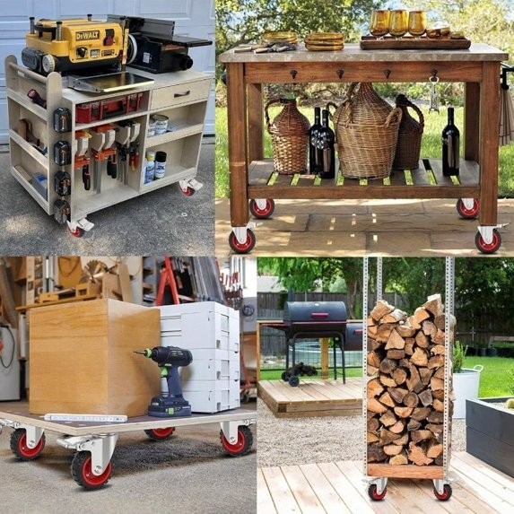 4 Swivel Caster Wheels With Safety Dual Locking And Rubber Tire Wheels Heavy Duty 300 Lbs Per Caster For Workbench Cart Trolley Dolly Cabinet Compact Rubber Castor Wheels 4Packs