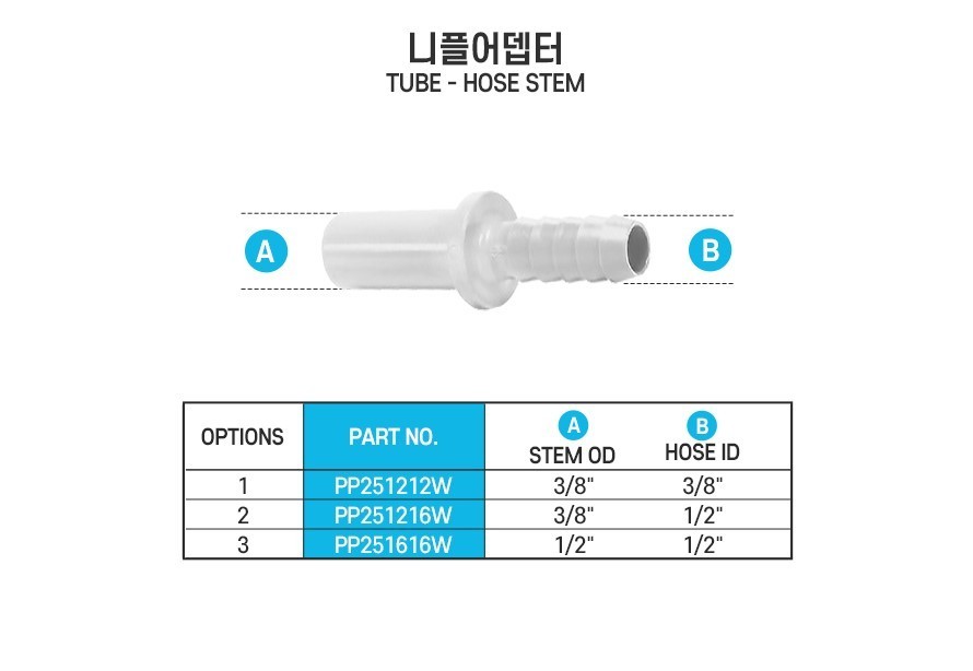 PP251616W JohnGuest TUBE HOSE STEM 1/2:1/2 Adaptor PP Material 10pcs/pack