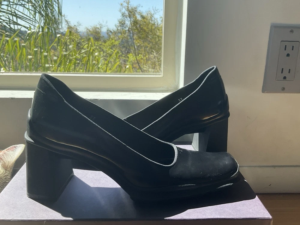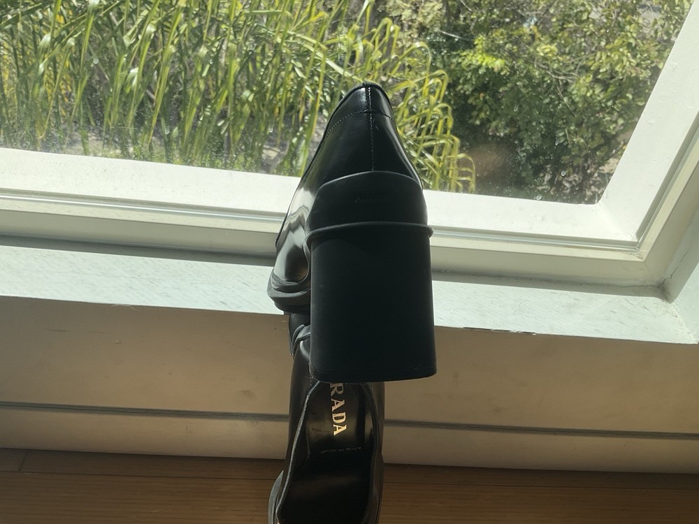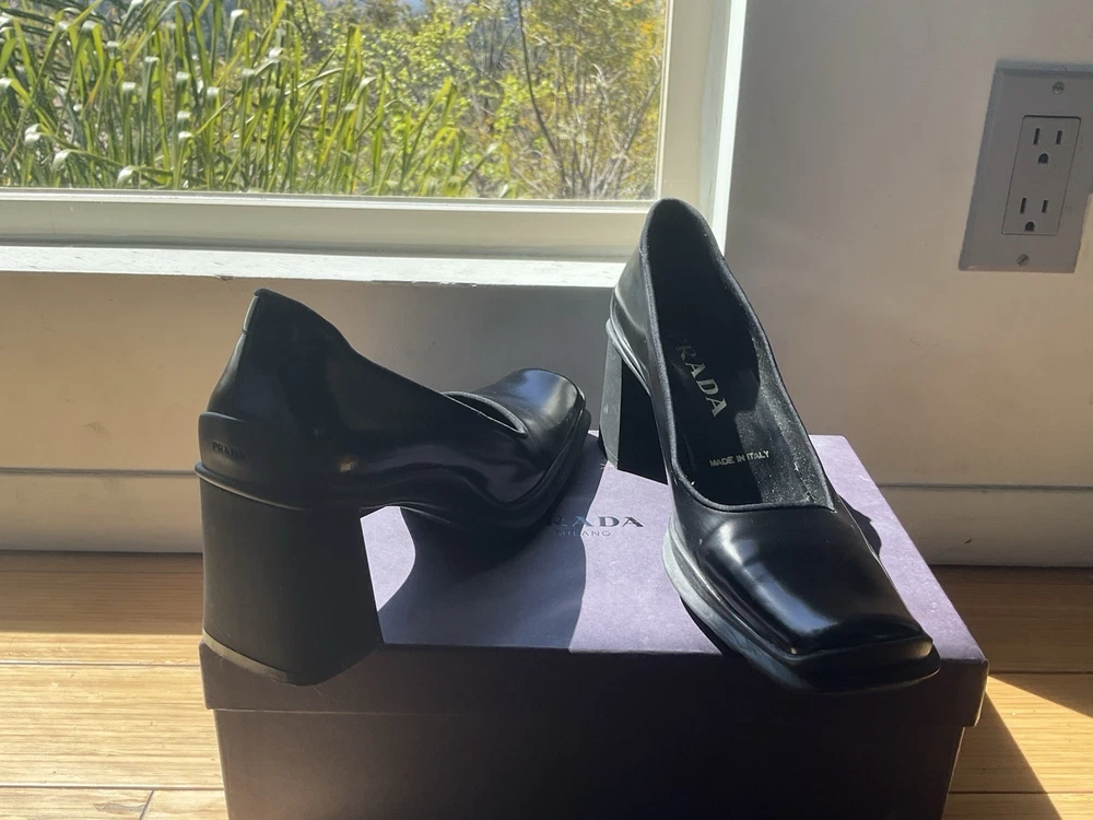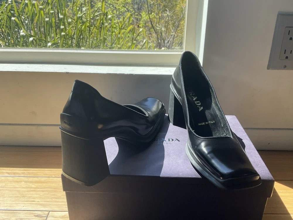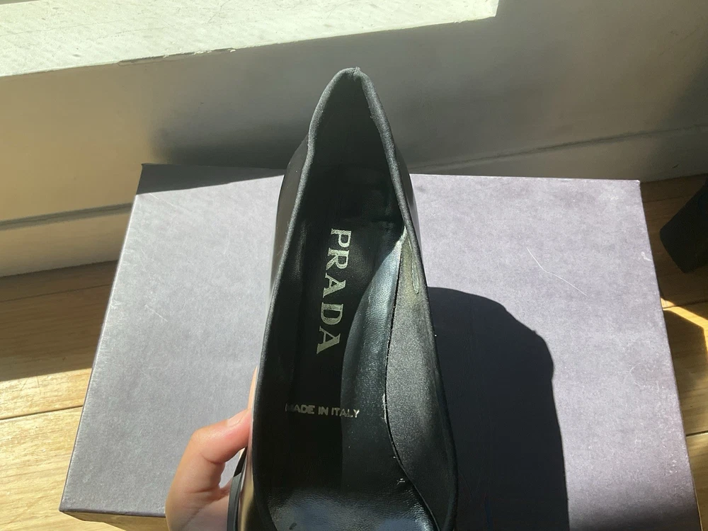 Here’s your polished listing for the Prada black leather heel: ⸻ These authentic Prada black leather heels are elegant, timeless, and in great condition—worn only once. Made in Italy and purchased in Rome for $800, they feature a classic closed toe and a sleek 3-inch heel that’s perfect for both work and dressy occasions. • Brand: Prada • Color: Black • Material: Leather • Size: 37 EU • Heel Height: Approximately 3 inches • Condition: Excellent, worn once • Comes with original box • Retail: $800 • Now selling for $339 — that’s over $400 off! I’m letting go of all my designer heels after foot surgery—they no longer fit my lifestyle. Be sure to check out my shop for more luxury steals! Feel free to DM me with any questions!