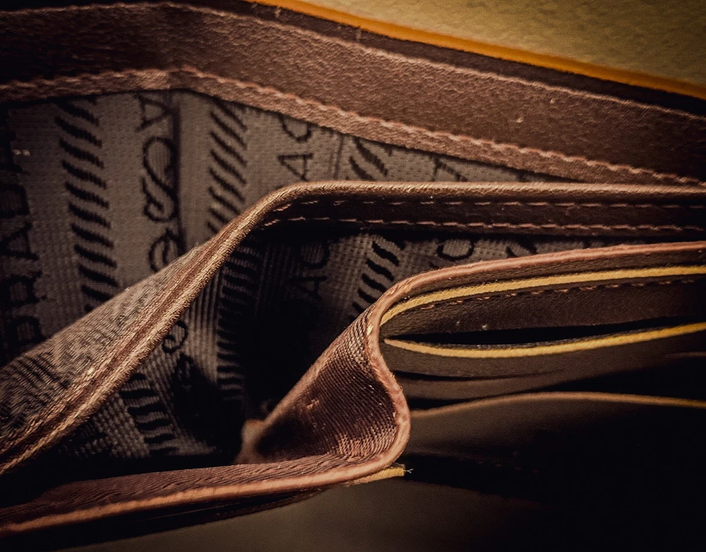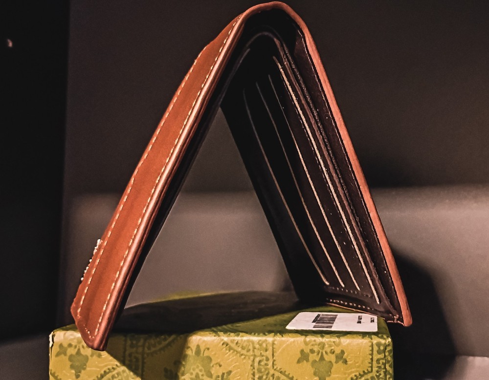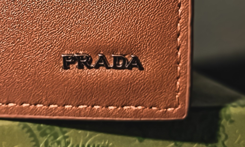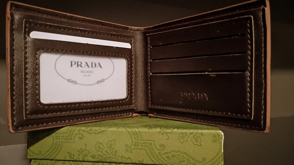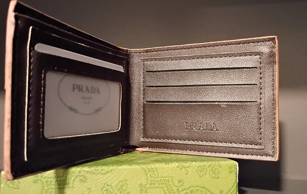 Prada brand-new, display model, vintage, Camel tan bifold wallet, slim in camel brown with a grained texture. Features logo-stamped interior, a rectangular shape, six card slots, and two inside wallet dollar sleeves. Authentic Certificate inside, Milano. Miami Model Society South Beach Retailer