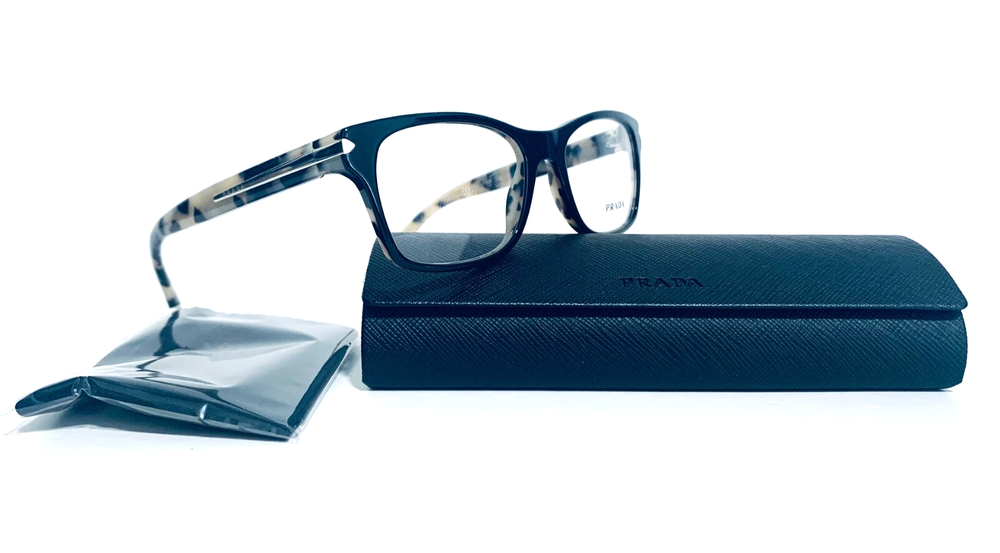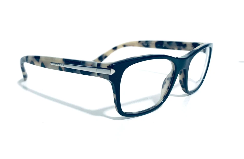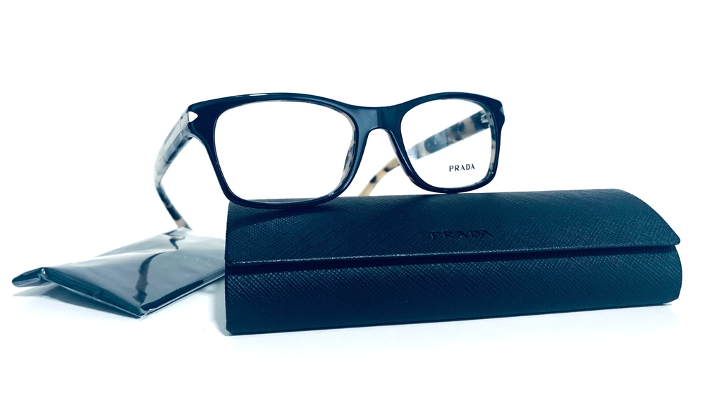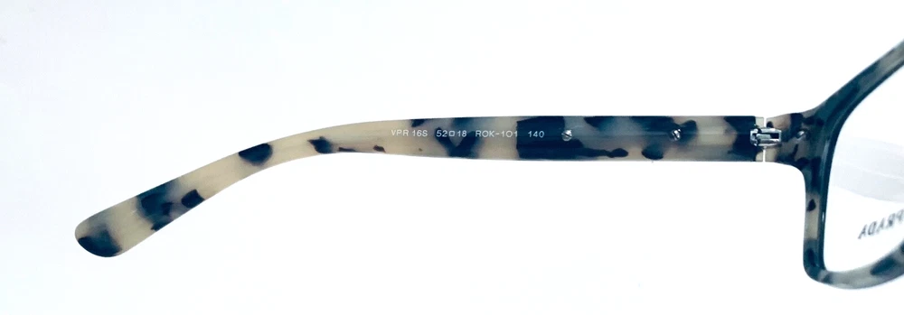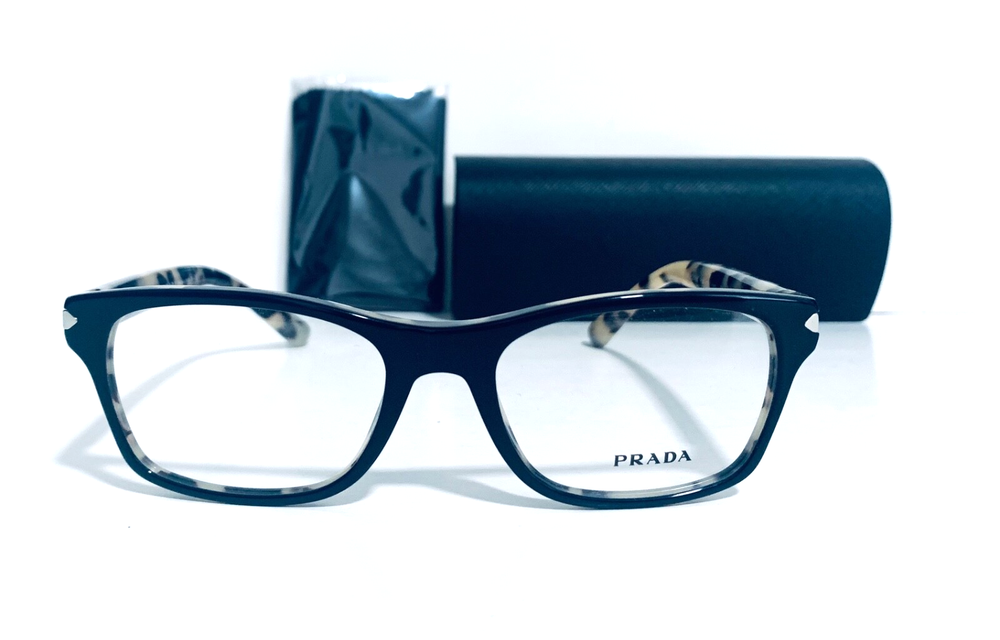 RACCOON STASH WELCOMES YOU! 100% Money Back Guarantee! NEW AUTHENTIC PRADA VPR 16S ROK-1O1 Shiny Black Top / Spotted Tortoise Arms Rectangular RX Eyeglasses Frame MADE IN ITALY Model: PRADA VPR 16S ROK-1O1 Color: Black / Spotted Tortoise Lens Color: Clear RX Demo Size: 52-18-140 MM The frame is brand new, never used or worn! COMES WITH ORIGINAL PRADA CASE and Generic Cleaning Cloth. Case Model may Vary. All items are packaged carefully for shipping to prevent any damage during transportation. International Buyers - Please Note: Import duties, taxes, and charges are not included in the item price or shipping cost. These charges are the buyer's responsibility. Please check with your country's customs office to determine what these additional costs will be prior to bidding or buying. If you have any questions please feel free to ask. Thank you for choosing us for your optical needs! Item ID: RV 010_094