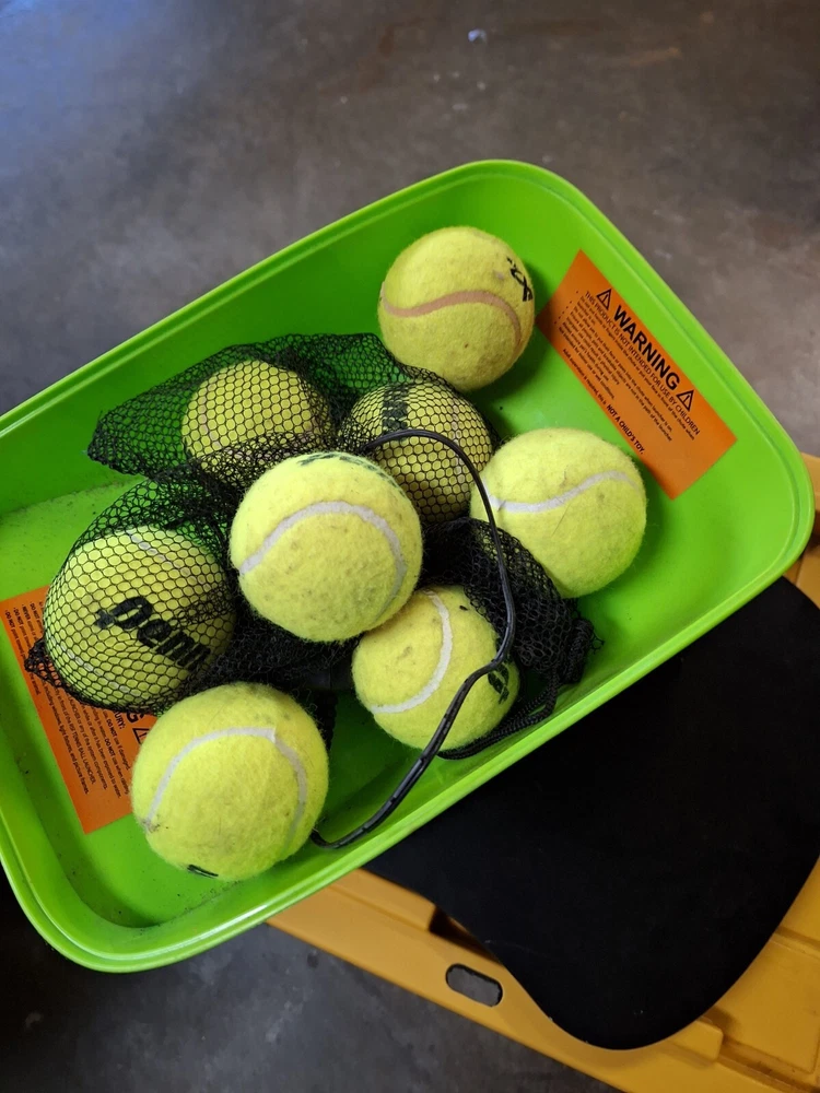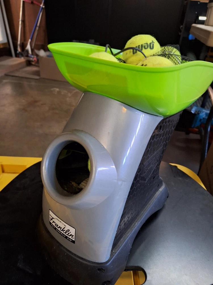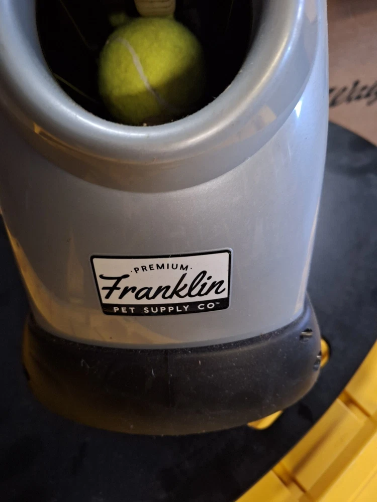 PREMIUM FRANKLIN PET SUPPLY COMPANY DOG BALL TOSS MACHINE WITH CHARGER PREOWNED This item was only used a couple of times, apparantly my dog isnt into fetching :) it includes charger and 9 tennis balls. Great item!