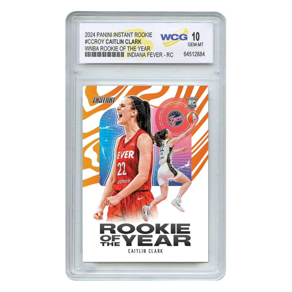 SECURE YOUR LOW PRE-SALE $$ PRICE $$ Pre-Sale Item: Shipping Details** This is a PRE-SALE item, and we anticipate shipping the cards within approximately 3-6 weeks. Once we receive them from Panini, they will be graded and sent out to you promptly. If they arrive sooner than expected (which often happens), we’ll ship them out right away! You’re purchasing card #RROY (Caitlin Clark Rookie of the Year), which will be graded as gem-mint 10. Secure your low pre-sale price now and buy with confidence from a trusted seller! Introducing the Caitlin Clark Rookie of the Year card—the most coveted card in WNBA history! With comparisons to legends like Michael Jordan, Clark is redefining the game and capturing the hearts of fans everywhere. This is the ultimate collector’s item, the must-have card that everyone is talking about! Don't miss your chance to own a piece of basketball history! 2024 Panini Instant CAITLIN CLARK * Rookie of the Year * ROOKIE CARD RC - Indiana Fever - WCG GRADED GEM MINT 10 BRAND-NEW, DIRECT FROM PANINI YEAR: 2024 BRAND: PANINI CARD #: CCROY PLAYER: CAITLIN CLARK SPECIAL: ROOKIE OF THE YEAR - Rookie Card (RC) GRADE: WCG GEM-MINT 10 SIZE: 2.5" x 3.5" - Normal Trading Card Size SKU: WNBA24A-PI-CCROY-B Product Type - Base Card Property - WNBA Player - Caitlin Clark (Rookie) FREE SHIPPING USA PRESALE - All Cards will be securely mailed with Tracking in about 40 business days.