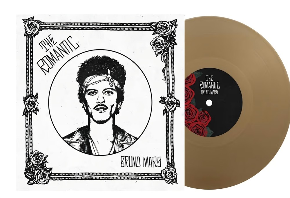 The product is a special presale of Bruno Mars' new single "The Romantic" on exclusive golden brown vinyl. This limited edition release includes a vinyl record and a CD of the album, all in mint condition. Features a mix of pop, R&B, soul, and funk genres. It is a collector's item for fans of the artist, released in 2026 under the Atlantic Records label.