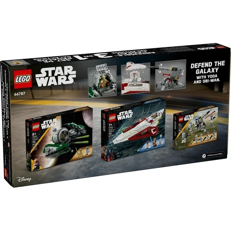 Join forces with legendary Jedi Masters in an epic Starfighter battle. This exclusive Walmart gift pack for builders ages 8 and up features 3 exciting sets: LEGO Star Wars Yoda's Jedi Starfighter 75360, LEGO Star Wars Obi-Wan Kenobi’s Jedi Starfighter 75333, and LEGO Star Wars 501st Clone Troopers Battle Pack, 75345. Swoop and soar in the cockpit of the Delta-7, dodge canon fire and use the Force to defeat the dark side. This special edition Star Wars gift set includes 9 Minifigures including Yoda, Obi-Wan Kenobi, R2-D2, Taun We, and more. Explore a galaxy far, far away with your favorite Star Wars characters! This LEGO Star Wars Jedi Masters Gift Set, makes the perfect holiday gift for Star Wars collectors and little builders. Contains 654 pieces. 3 sets in 1 – Stage epic battles with LEGO Star Wars Obi-Wan Kenobi’s Jedi Starfighter 75333, LEGO Star Wars Yoda’s Jedi Starfighter 75360, and LEGO Star Wars 501st Clone Troopers Battle Pack 75345 building sets Build with the Force – This 3-pack Star Wars gift set includes 2 Starfighters, 2 Jedi Masters, 2 droids, 4 Clone Troopers, 1 Taun We, plus 6 weapons and an AV-7 Anti-Vehicle Cannon Walmart exclusive – This value gift set is only available at Walmart Star Wars toy for ages 8 and up – the LEGO Star Wars Jedi Masters Gift Set is the perfect gift for Star Wars fans ages 8 and up Add to their LEGO Star Wars collection – Includes 9 collectible Star Wars Minifigures to recreate iconic scenes and action-packed adventures Safety is a priority – LEGO components are dropped, heated, crushed, twisted and carefully analyzed to make sure that they comply with stringent global safety standards