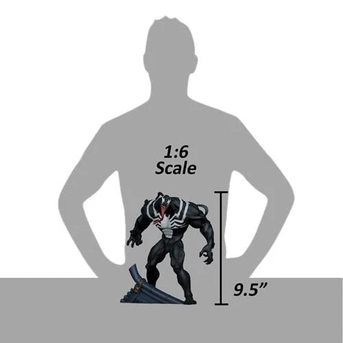 PRE SALE!! ESTIMATED TO ARRIVE IN FEBRUARY 2026 OR SOONER Marvel Rivals Wave 1 Venom 1:6 Scale Posed Figure with Scene and Comic: Inspired by the Marvel Rivals video game comes the Marvel Rivals Wave 1 Venom 1:6 Scale Posed Figure. This 1:6 scale figure includes an environmental base and backdrop scene, as well as a Marvel Rivals Issue #1 comic book! Also included is an art card with character artwork on the front, and a comic synopsis on back. This posed figure measures approximately 9 1/2-inches tall. Ages 14 and up! Using his symbiote-enhanced body as the perfect living weapon, Eddie Brock and his alien ally stand ever-ready to unleash vicious attacks upon anyone he deems an enemy. Those ensnared by Venom's tentacles have no choice but to surrender to this insatiable predator