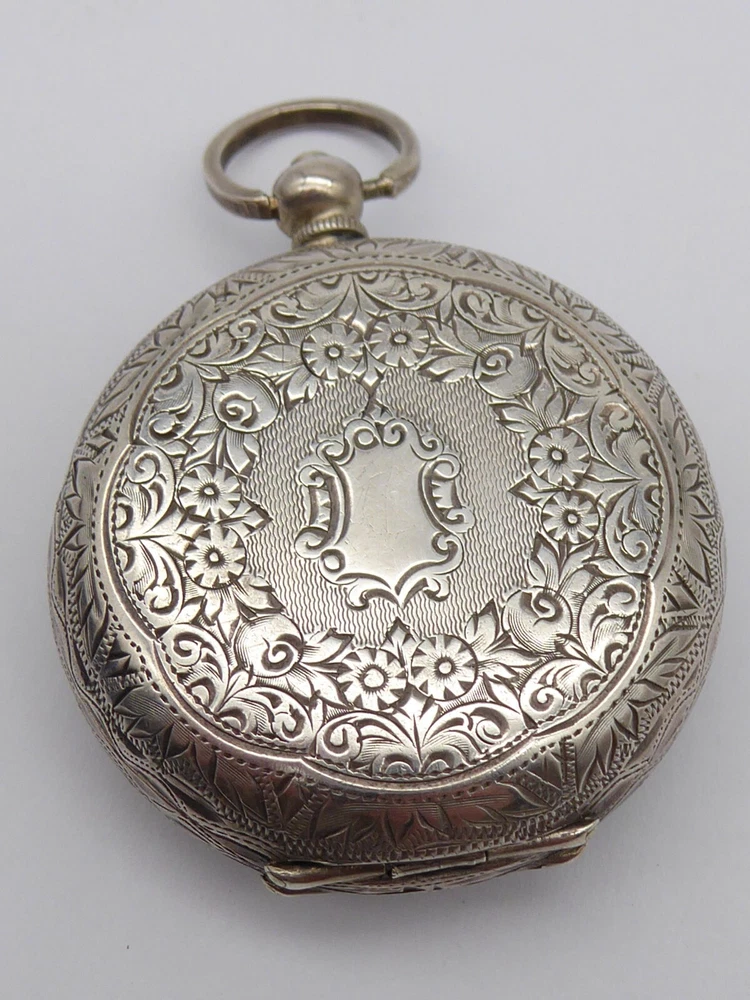 Case Material: Silver Department: Women Caseback: Solid Brand: Unbranded gtin13: Does not apply Movement: Mechanical (Manual) Type: Pocket Watch Closure: Open Face EAN: Does not apply Dial Colour: Silver Case Colour: Silver