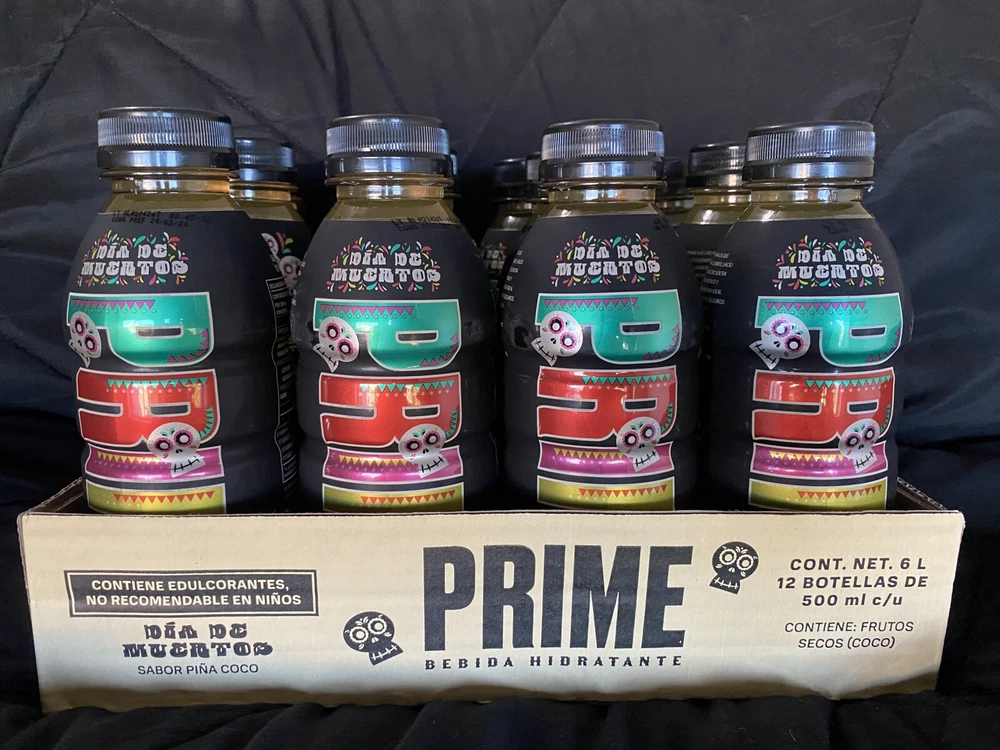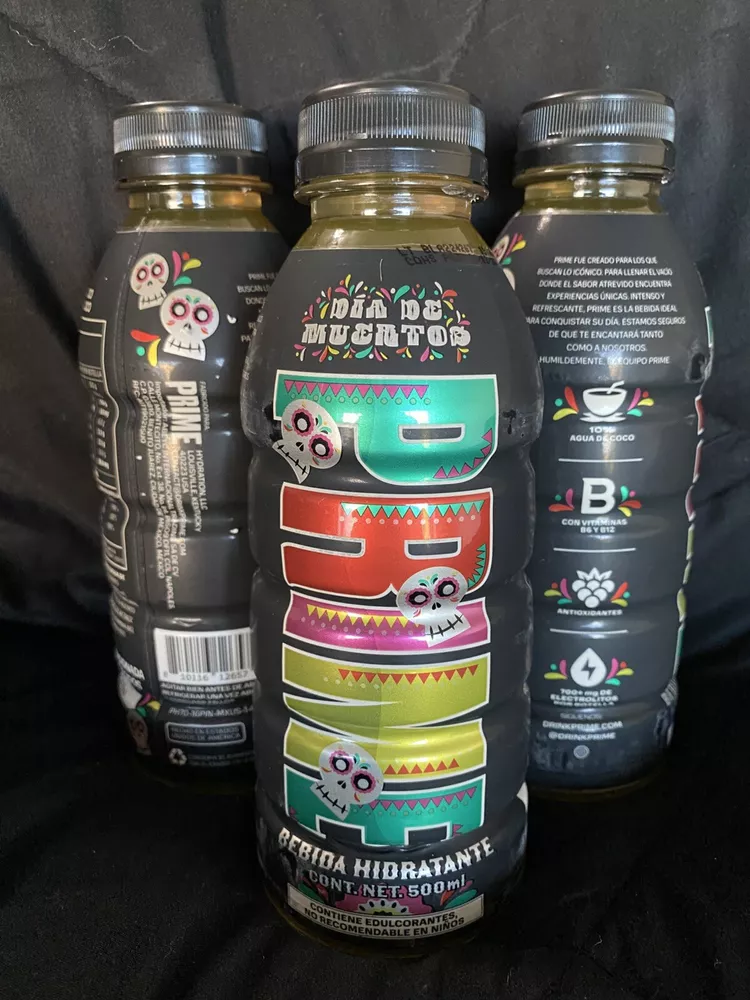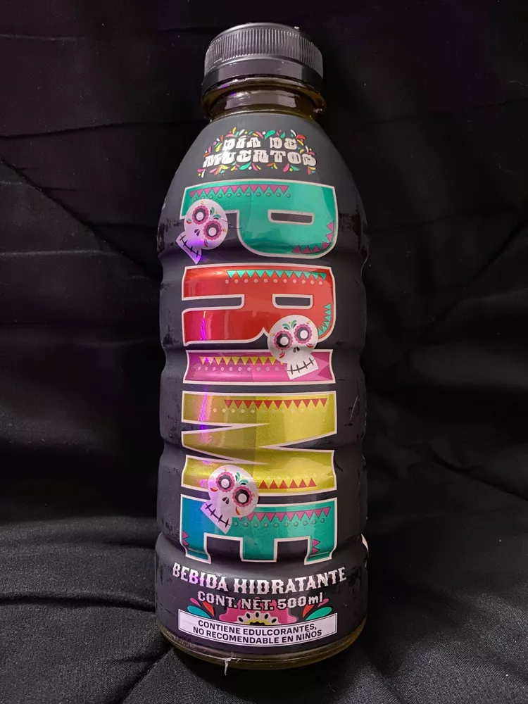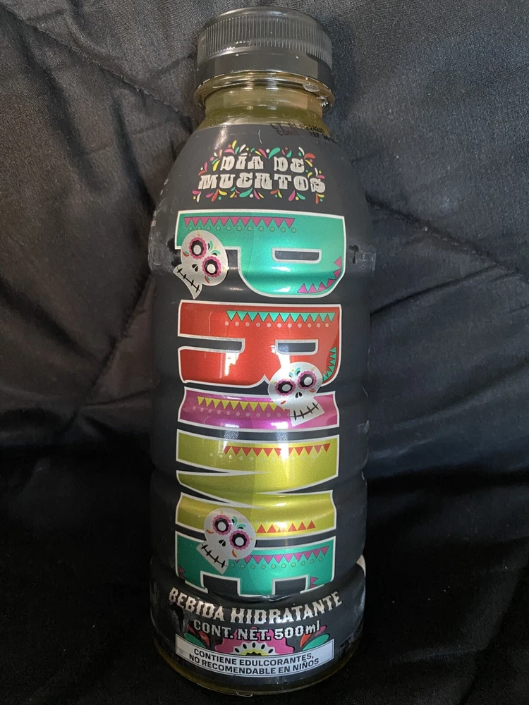 The product is a limited edition Prime bottle featuring a design inspired by the theme of "Dios De Los Muertos." It is a multi-color bottle created in 2024 in Mexico. The design is vibrant and eye-catching, representing the energy drink brand. The product is currently available for shipping. These bottles are extremely hard to get in hand and a confirmed shipment is in-bound now!!! First come first serve while supplies last. Listing is for the sealed case of Prime, there is a small piece of fragile tape in top of the case from Customs Clearance Process. NO RETURNS due to the highly limited availability, images will be sent of the packaging recorded under 4K to prevent EBay claims. **NOW SHIPPING** US SELLER