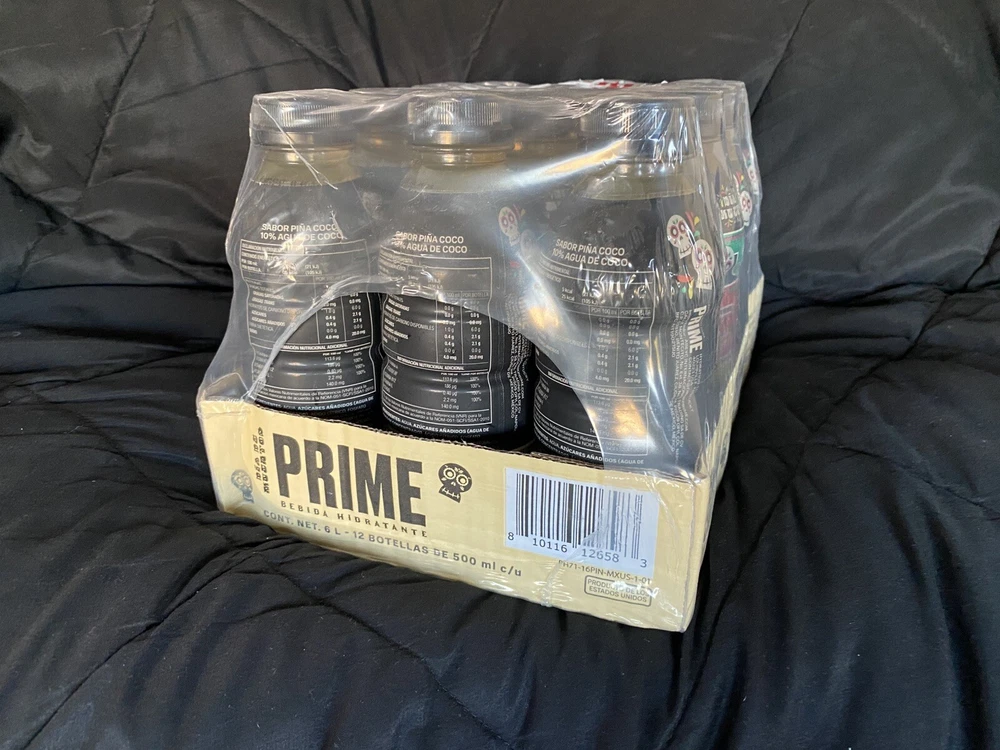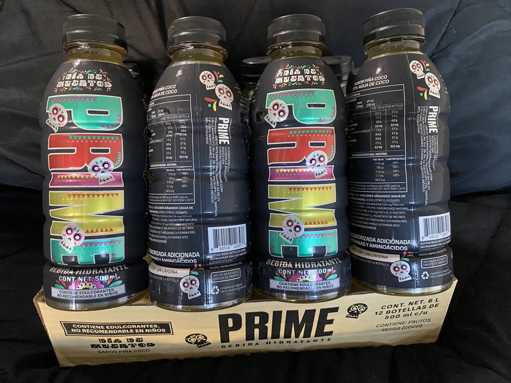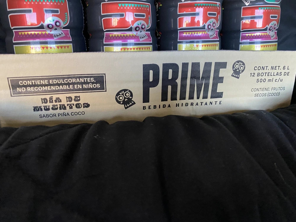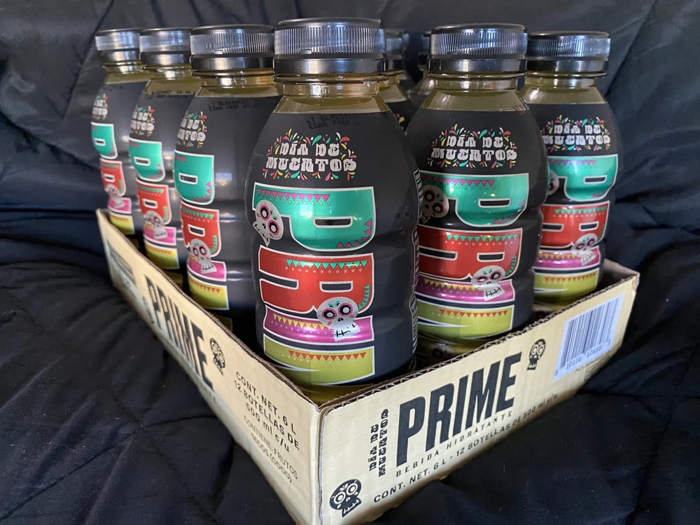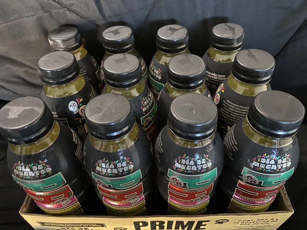 The product is a limited edition Prime bottle featuring a design inspired by the theme of "Dios De Los Muertos." It is a multi-color bottle created in 2024 in Mexico. The design is vibrant and eye-catching, representing the energy drink brand. The product is currently available for shipping. These bottles are extremely hard to get in hand and a confirmed shipment is in-bound now!!! First come first serve while supplies last. Listing is for the sealed case of Prime, there is a small piece of fragile tape in top of the case from Customs Clearance Process. NO RETURNS due to the highly limited availability, images will be sent of the packaging recorded under 4K to prevent EBay claims. **NOW SHIPPING** US SELLER