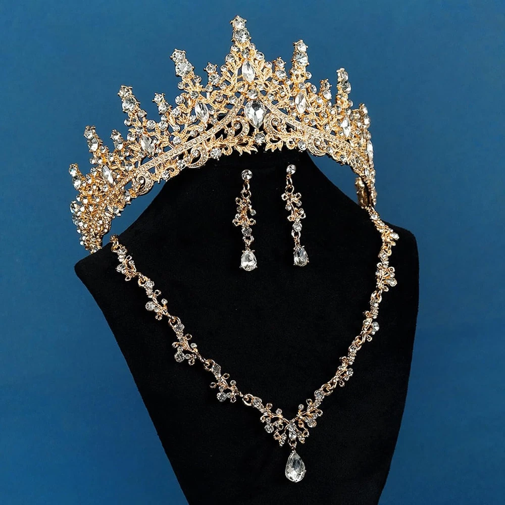 PRINCESS BRIDE Women Jewelry Set Tiara Set with Earrings and Necklace Gold Gothic Rhinestone Bridesmaid Jewelry Set for Wedding Costume Hair Accessories Product Details Color: Gold Brand: PRINCESS BRIDE MPN: EL-CLO-TIARA SET-EIL0004 UPC: Does not apply EAN: Does not apply Department : womens Date First Available : July 9, 2024 Brand, Seller, or Collection Name: PRINCESS BRIDE Metal stamp: no metal stamp Metal: Aluminum Material: Metal Gem Type: Rhinestone Item Length: 0.39 inches Clasp: Lobster Clasp