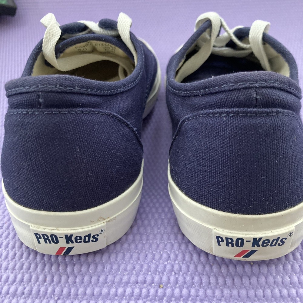 These sneakers are a great find! The navy canvas looks clean and stylish, with just minor wear that adds character. Super comfortable and true to size—perfect for casual wear. The slight color difference from cleaning is barely noticeable. Love the vintage vibe!