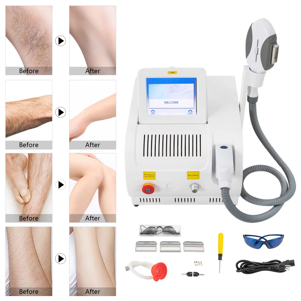 PRO OPT Elight IPL Laser Hair Removal RF Skin Rejuvenation Machine Permanent US 1. The maximum pulse width of the product is 5ms 2. The minimum pulse delay of the product is 100ms Product Introduction: Applying the technique of IPL and Bi-polar Radio Frequency, the equipment acts on the entire skin corium and connective tissue, stimulates the collagens of different depth to realign and grow, then gets treatment effect. Bio-polar RF release energy at the same time, with the selective absorption for the skin to light energy, various pathological tissues of corium and epidermis creates Photothermolysis effect. Since light energy is far below conventional IPL, the pigment tissue and vascular pathological tissue of the corium and epidermis would absorb more energy without injuring the epidermis, and then remove these pathological tissues better and get the effect. IpL machine with different sapphire filters 530nm for pigmentation and spot removal 640nm for hair removal Specification Feature: Acne Treatment, Hair Removal, Skin Tightening Wavelength:480nm/530nm/640nm Output Power:2000W Spectrum Area:480-640nm Spot Size:15*50mm Treatment Handle:1 handle IPL Energy:1-50J/cm2 Display:8.4 inch Touch Screen Intergrated skin cooling :-4 degree ~ +10 degree Voltage:110V 60Hz Advantage 1) Cost effective: One hand piece with interchangeable filters for different treatments. 2) High-efficiency: Large spot size 15*50mm ensures high-efficient operation. 3) Fast treatment. Frequency up to 10Hz. 4) Hair free, even on work on blonde, red or fine hair. 5) Skin free, suitable for all skin types, even tanners. 6) Comfortable: Effective air and water cooling system with copper radiator, adjustable contact cooling temperature from -4℃~0℃, makes the treatment more comfortable. 7) IPL combines with RF, used on light color soft hair. RF is suitable for all types of skin. 8) User friendly: Standard programming mode comes with preset settings; Professional programming mode for advanced treatment. 9) Microcomputer Flash counter for individual hand piece to record every shot. 10) Operations Safety: water flow and water level control system keeps IPL machine in safe condition. Package: 1*Hair removal machine (1) After receiving the machine, it must be filled with water before it can be connected to the power. How to add water: Open the overflow nozzle first and add water to the water filling nozzle, until you can see the water flows out from the overflow nozzle. After filling up the water, close the overflow nozzle only,do not close the water filling nozzle. (2)It's better not to change the background settings, if you've done,please contact us at any time. Statement (FDA, ARTG) The sale of this item may be subject to regulation by the U.S. Food and Drug Administration and state and local regulatory agencies. If the item is subject to FDA regulation, I will verify your status as an authorized purchaser of this item before shipping of the item. If you have questions about legal obligations regarding sales of medical devices, you should consult with the FDA's Center for Devices and Radiological Health: https://www.fda.gov/cdrh/devadvice/ https://www.fda.gov/cdrh/industry/support/index.html Thank you for your cooperation. Product Introduction: Applying the technique of IPL and Bi-polar Radio Frequency, the equipment acts on the entire skin corium and connective tissue, stimulates the collagens of different depth to realign and grow, then gets treatment effect. Bio-polar RF release energy at the same time, with the selective absorption for the skin to light energy, various pathological tissues of corium and epidermis creates Photothermolysis effect. Since light energy is far below conventional IPL, the pigment tissue and vascular pathological tissue of the corium and epidermis would absorb more energy without injuring the epidermis, and then remove these pathological tissues better and get the effect. IpL machine with different sapphire filters 530nm for pigmentation and spot removal 640nm for hair removal Specification Feature: Acne Treatment, Hair Removal, Skin Tightening Wavelength:480nm/530nm/640nm Output Power: 2000W Spectrum Area:480-640nm Spot Size:15*50mm Treatment Handle:1 handle IPL Energy:1-50J/cm2 Display:8.4 inch Touch Screen Intergrated skin cooling :-4 degree ~ +10 degree Voltage:110V 60Hz Size: 38*53*27cm/14.96"*20.86"*10.62" Net Weight: 19kg Gross Weight: 22kg Package Size: 61*48*45cm Advantage 1) Cost effective: One hand piece with interchangeable filters for different treatments. 2) High-efficiency: Large spot size 15*50mm ensures high-efficient operation. 3) Fast treatment. Frequency up to 10Hz. 4) Hair free, even on work on blonde, red or fine hair. 5) Skin free, suitable for all skin types, even tanners. 6) Comfortable: Effective air and water cooling system with copper radiator, adjustable contact cooling temperature from -4℃~0℃, makes the treatment more comfortable. 7) IPL combines with RF, used on light color soft hair. RF is suitable for all types of skin. 8) User friendly: Standard programming mode comes with preset settings; Professional programming mode for advanced treatment. 9) Microcomputer Flash counter for individual hand piece to record every shot. 10) Operations Safety: water flow and water level control system keeps IPL machine in safe condition. Package: 1*Hair removal machine (1) After receiving the machine, it must be filled with water before it can be connected to the power. How to add water: Open the overflow nozzle first and add water to the water filling nozzle, until you can see the water flows out from the overflow nozzle. After filling up the water, close the overflow nozzle only,do not close the water filling nozzle. (2)It's better not to change the background settings, if you've done,please contact us at any time. Statement (FDA, ARTG) The sale of this item may be subject to regulation by the U.S. Food and Drug Administration and state and local regulatory agencies. If t