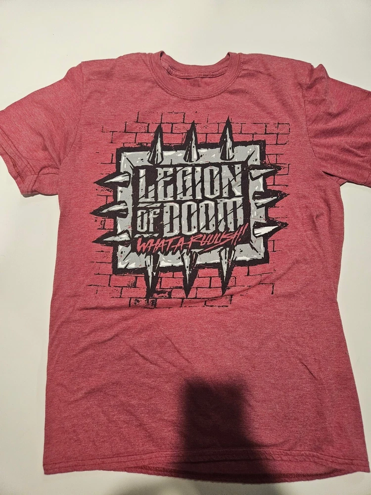 Embrace your wrestling fandom with the PRO Wrestling Crate "LEGION OF DOOM LOD" T-Shirt, a must-have for any enthusiast's wardrobe. This medium-sized, unisex adult tee is officially licensed, ensuring authenticity and quality for the dedicated fan. Featuring the iconic Legion of Doom logo, this shirt is perfect for supporters of the legendary wrestling duo and fans of the AEW league. Whether you're headed to a live match or just out and about, this shirt is a versatile addition to any fan's collection.