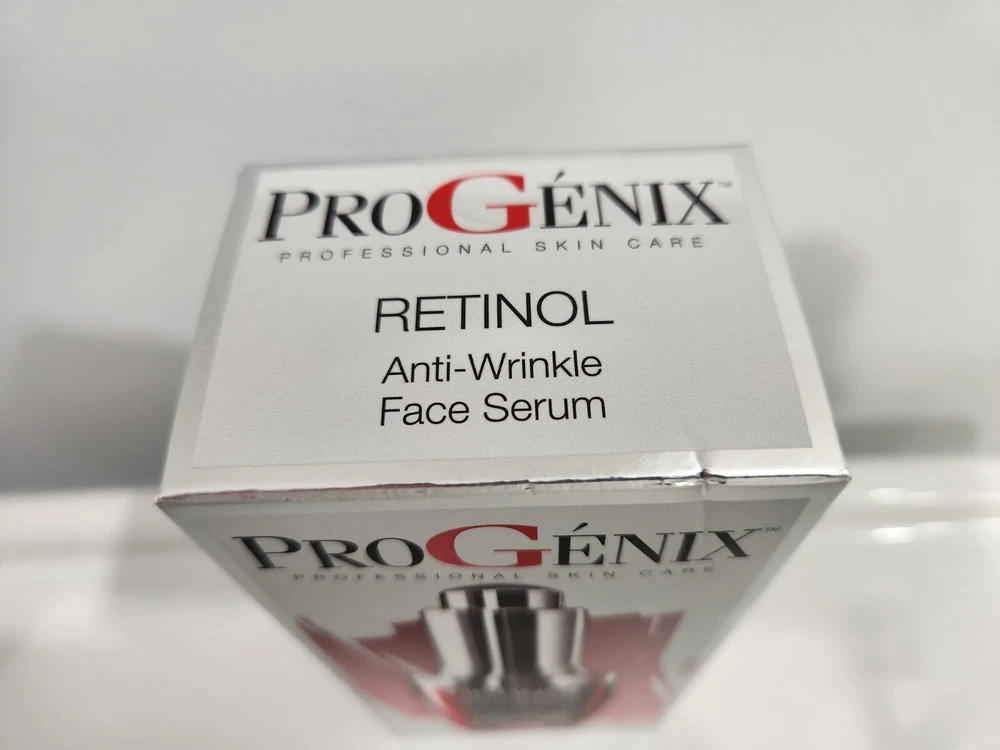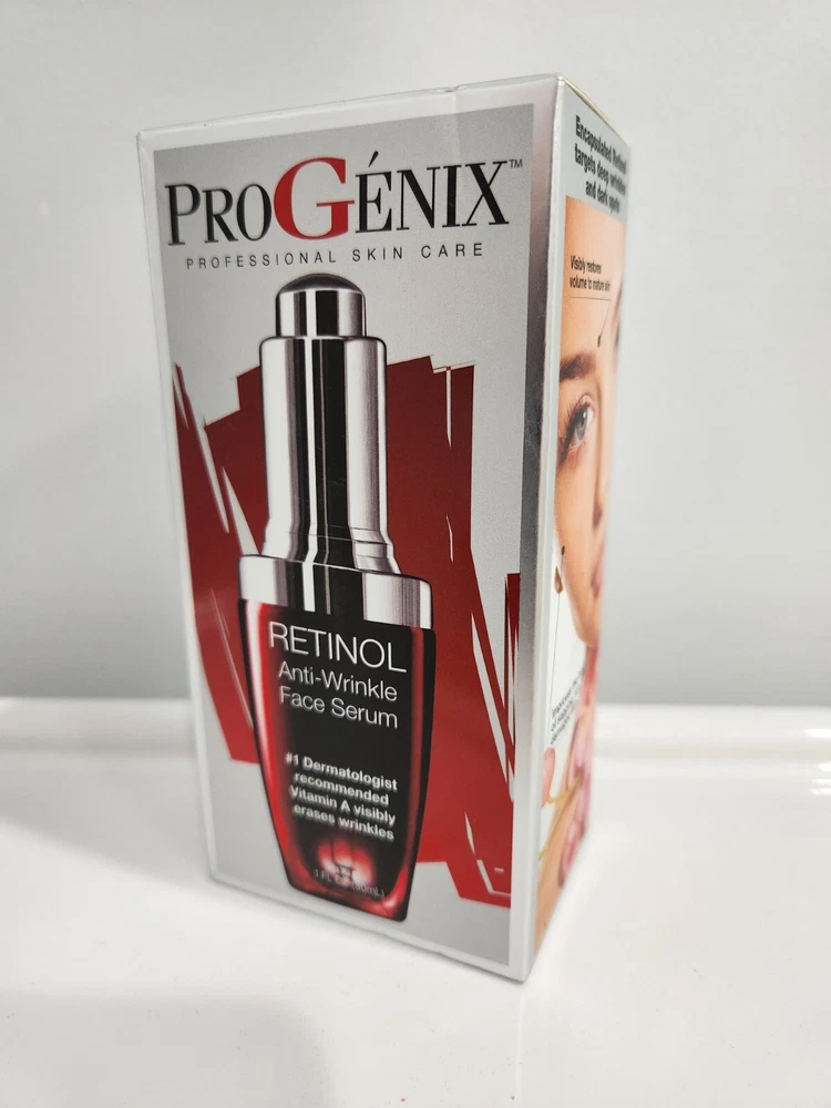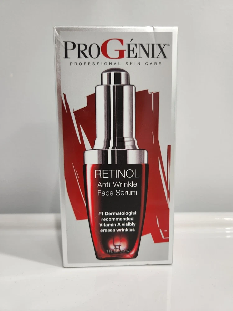 PROGENIX RETINOL ANTI-WRINKLE FACE SERUM - 1 FL OZ TARGETS DEEP WRINKLES AND DARK SPOTS! Progenix Professional Skin Care Retinol Anti-Wrinkle serum will target those deep wrinkles that other serums and anti-aging creams havent been able to cover. This anti-aging serum with retinol, Jojoba Oil, and Aloe Vera is gentle on the skin but tough on your wrinkles, dark spots, and fine lines. Can be used with other face moisturizers and creams, and oils. A great nighttime repair treatment, this best-selling serum that really works will leave you amazed when you wake up in the morning! This face serum with retinol from Progenix combines the best anti-aging ingredients to help combat the signs of aging. Encapsulated Retinol effectively minimizes the appearance of deep wrinkles, fine lines, age spots, and dark spots. Within just 6 Weeks this serum will dramatically reduce the appearance of wrinkles, sagging pores and sun spots. Anti-wrinkle face serum with retinol also contains Jojoba Oil & Aloe Vera to help hydrate and moisturize the skin. Hyaluronic Acid hydrates and plumps the skin to give your complexion a healthier and glowing appearance. Gotu Kola preserves and restores youthfulness to the skin by firming and tightening your skin. This serum can be used as a nighttime serum to help combat aging while you sleep. Wake up daily to visibly softened wrinkles and smoother looking skin. Can be used with other facial moisturizers or oils. Some tightness, flushing or redness may occur when you first use Retinol. This is normal and means its working. Use an additional moisturizer or reduce frequency to every other night until skin adjusts to powerful renewal ingredients. Sunscreen is highly recommended while using products with Retinol Paraben free. Safe alternative to injections. Not tested on animals. Made in USA. NEW IN ORIGINAL FACTORY SEALED BOX... GOOD LUCK!