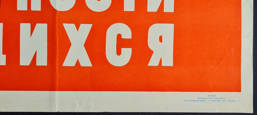 Original slogan on the poster: ПРОЛЕТАРИЙ ВСЕХ СТРАН - СОЕДИНЯЙТЕСЬ! 1 МАЯ - ДЕНЬ МЕЖДУНАРОДНОЙ СОЛИДАРНОСТИ ТРУДЯЩИХСЯ. Literally English translation: PROLETARIAT OF ALL COUNTRIES - GET UNITED! 1ST OF MAY - WORKING INTERNATIONAL SOLIDARITY DAY. POSTER ARTIST: LAPSHYN V. PRINT YEAR: 1958 SUBJECT: HOLIDAY OF 1ST MAY / LABOR DAY LANGUAGE: RUSSIAN PRINT RUN: 225.000 PUBLISHED BY: "IZOGIZ", MOSCOW SIZE: IN: 26 ³/₈ x 40 ½ = CM: 67 x 103 CONDITION: FROM FAIR TO GOOD, CREASES, TEARS Stunning Soviet poster glorifying the 1st of May or Labor Day also known as International Workers' Day - is a May 1st celebration of laborers and the working classes that is promoted by the international labor movement. It became an important official holiday of the Soviet Union, celebrated with elaborate popular parade in the center of the major cities. The biggest celebration was traditionally organized in Red Square, where the General Secretary of the CPSU and other party and government leaders stood atop Lenin's Mausoleum and waved to the crowds. www.facebook.com/sovietartposters Listing and template services provided by inkFrog