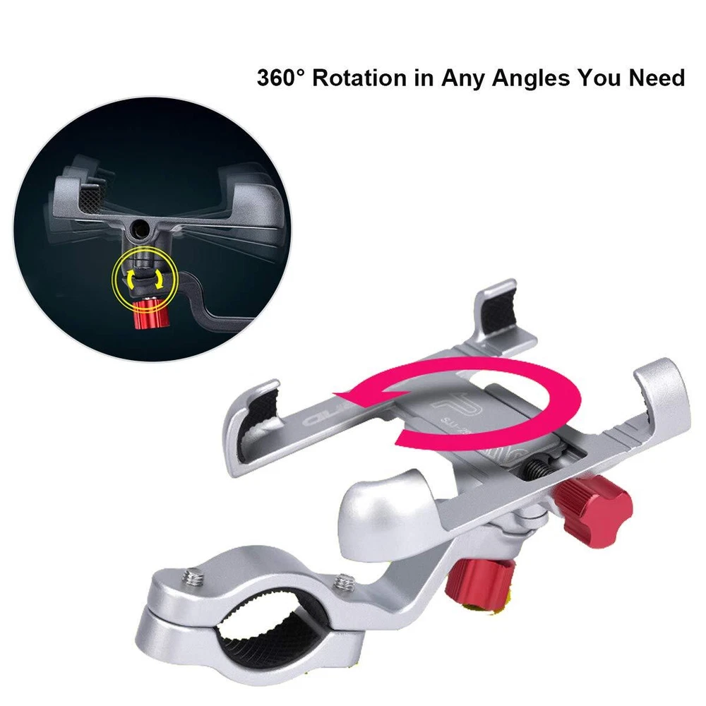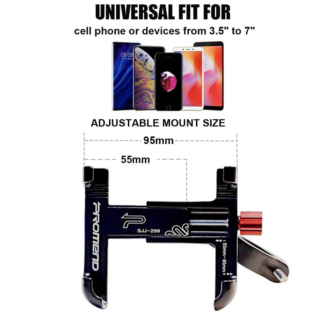 YOUR GREAT RIDING COMPANION No matter when you are planning to go riding at anywhere, Bike Phone Mount Holder is your perfect companion to give you convenience and keep your phone,device safe. Free your hands when you ride and need to use calls, music, maps, time or GPS.This bicycle mobile mount will provide great grip and make your phone stay in right place, no worry about snapped out or slidding or scratch, and it will not affect your normal phone use. Sturdy enough to withstand the vibration of various road conditions. The contoured edges have a tight grip, make your phone stay in right place, no worry about snapped out or slidding, and it will not affect your normal phone use. The cushioning adhesive patch can reduce vibration as well as avoid phone surface scratch. EASY INSTALLATION, NO ADDITIONAL TOOLS NEEDED Very easy installing in few minutes with the tools we supplied, no other tools needed. Details please refer to the instruction come in the package. PACKAGE INCLUDING 1x Bike phone mount holder 1x Instruction 1x Wrench 1x Screw 8x Small silicone pads 1x Soft plastic strap BIKE MOBILE MOUNT SPECIFICATION Mount Size: 55mm-95mm. Compatible Screen Size: 3.5" - 7". Mount Base Diameter: 0.85" to 1.25". Weight: 0.26lb. APPLICATION Compatible iPhoneXS MAX/ XS/ XR/ X/ 8/ 8 Plus/ 7/ 7 Plus/ 6s Plus/ 6s/ 6 Plus/ 6, Galaxy S10 / S10 / S10e, Huawei Mate30/20, Electrical Devices etc. Suitable for: Bicycles, motorcycles, folding bikes, scooters, etc. Make it fits different handlebars by Install in 3 different ways. AFTER SALE SERVICE We will always try our best to make sure our customers pleased with your purchasing from us. No matter how long you purchased our bike cell phone holder,if any question, please feel free to contact us via 'Your Account - 'Your Orders' - 'Ask Question'. ERGONOMIC & ANTI-SLIP - The bike phone mount is ergonomic designed, with a silicon pad to anti-slip and reduce vibration, great grip makes you no worry about snapped out while riding, meanwhile it is 360 rotation make it more convenient to use your phone in riding. PREMIUM QUALITY & SAFTY - The whole bike phone holder made of high quality Aluminum Alloy by CNC frosted which is durable and supportive, able to support 40 pounds pulling force. No worry about broken in your riding, it is very safe for your phone. UNIVERSAL FIT & LIGHTWEIGHT - This bike mobile mount clamp's size is adjustable from 55mm - 95mm, compatible for phone or devices between 3.5" to 7", iPhone Xs Max, X, XR, 8 Plus, 7 Plus, 6s Plus , Galaxy S10, S9, S8 etc. This bicycle phone holder is ultralight for 0.29lb. HANDLEBAR COMPATIBLE - The bike motorcycle phone mount handlebar base diameter is adjustable from 0.85" to 1.25" which is suitable for most of handlebars of bicycle/bike/motorcycle. It could be applicated to bike or motorcycle by 3 different ways which explained in detail in the instruction come with. AFTER SALE SERVICE - We will always try our best to make sure our customers pleased with your purchasing from us.No matter how long you purchased our bike cell phone holder, If any question, please feel free to contact us via 'Your Account - 'Your Orders' - 'Ask Question'.