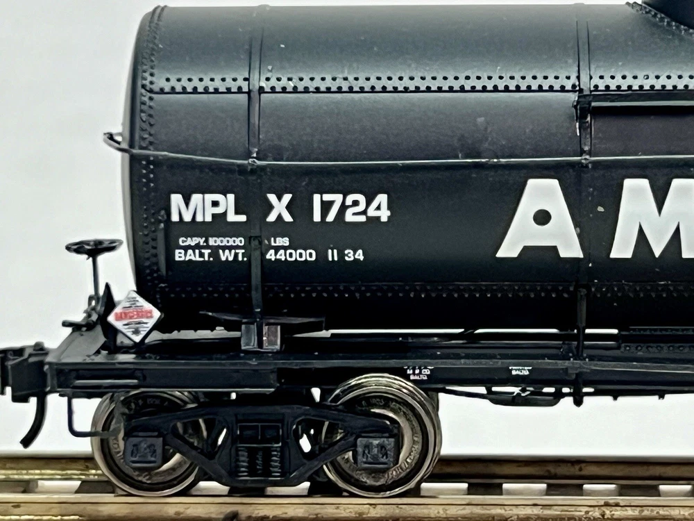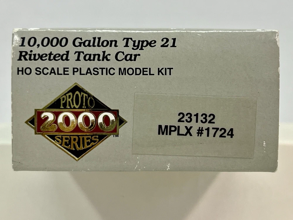 PROTO 2000, HO Kit# 23132( Assembled). Type 21, 10,000 Gallon Riveted Tank Car, MPLX#1724 PRE-ASSEMBLED model kit READY to RUN. Please view photos for condition and contents