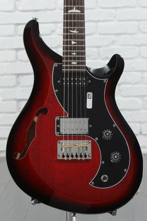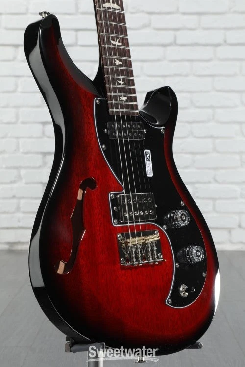 A Modern PRS with Vintage Character Offering a perfect amalgamation of vintage personality and modern reliability, the PRS S2 Vela Semi-Hollow brandishes a charming, offset-shaped mahogany body with the addition of a semi-hollow body and an F-hole for maximum attitude and resonance. You'll appreciate the comfortable playability of this semi-hollowbody electric guitar's mahogany neck and 22-fret rosewood fingerboard. The S2 Vela Semi-Hollow's USA-made pickups and electronics comprise a DS-01 humbucker at the bridge and a Narrowfield mini humbucker in the neck position, along with a coil tap that unlocks a complete arsenal of spanky single-coil textures. You also get a PRS plate-style bridge with brass saddles, assuring you of spot-on intonation and ear-grabbing sustain. Anchored by Paul Reed Smith's vaunted playability and craftsmanship, the S2 Vela Semi-Hollow is the perfect axe for guitarists searching for a fresh PRS playing experience.PRS craftsmanship with a fresh aesthetic The S2 Vela Semi-Hollow brandishes Sweetwater is an Authorized PRS Dealer Genuine Open Box Item Sweetwater's 2-year warranty and 55 point inspection PRS S2 Vela Semi-Hollow Electric Guitar - Scarlet Sunburst Semi-hollowbody Electric Guitar with Mahogany Body, Mahogany Neck, Rosewood Fingerboard, and 2 Humbucking Pickups - Scarlet Sunburst A Modern PRS with Vintage Character Offering a perfect amalgamation of vintage personality and modern reliability, the PRS S2 Vela Semi-Hollow brandishes a charming, offset-shaped mahogany body with the addition of a semi-hollow body and an F-hole for maximum attitude and resonance. You'll appreciate the comfortable playability of this semi-hollowbody electric guitar's mahogany neck and 22-fret rosewood fingerboard. The S2 Vela Semi-Hollow's USA-made pickups and electronics comprise a DS-01 humbucker at the bridge and a Narrowfield mini humbucker in the neck position, along with a coil tap that unlocks a complete arsenal of spanky single-coil textures. You also get a PRS plate-style bridge with brass saddles, assuring you of spot-on intonation and ear-grabbing sustain. Anchored by Paul Reed Smith's vaunted playability and craftsmanship, the S2 Vela Semi-Hollow is the perfect axe for guitarists searching for a fresh PRS playing experience. PRS craftsmanship with a fresh aesthetic The S2 Vela Semi-Hollow brandishes a solid mahogany body with a contoured offset shape that sets it apart from the rest of the guitars in Paul Reed Smith's stable. Once you pick it up, however, you'll relish in the familiar — and eminently comfortable — playability of this guitar's Pattern Regular neck carve, and its 22-fret, 10-inch-radius rosewood fingerboard is the perfect launchpad for the gamut of musical finger gymnastics. This vintage-inspired guitar is simply bursting with flavorful personality, making it a perfect slam dunk for players searching for something a bit off the beaten path or for die-hard PRS devotees looking for a new twist. USA-made pickups and electronics Jam-packed with USA-made, pickguard-loaded pickups and electronics, the PRS S2 Vela Semi-Hollow bursts with attitude-laden tone. This guitar's PRS DS-01 bridge humbucker yields a bright, punky tone with a bell-like quality that tackles overdriven leads and crystalline cleans with equal assurance. At the neck, you'll find a PRS Narrowfield humbucker that delivers the best characteristics of a humbucker, a P-90, a traditional single-coil, and a mini humbucker, all blended in a single glorious sonic cocktail. To top it off, the S2 Vela Semi-Hollow includes a push-pull coil tap on its tone knob, which provides access to an array of tempting single-coil textures. High-performance hardware The guitarists here at Sweetwater have found the S2 Vela Semi-Hollow to be among the most stable guitars in the entire PRS lineup. This is not only due to PRS's stringent manufacturing standards but also to its superior hardware. The S2 Vela Semi-Hollow's PRS plate-style bridge is as rock-solid as they come. Harkening back to Paul Reed Smith's early designs, this aluminum-plate bridge features two compensated brass saddles that ensure on-target intonation and near-endless sustain. What's more, this bridge is top-loading for lightning-fast string changes. The S2 Vela Semi-Hollow also flaunts Phase III non-locking tuners that not only keep your guitar in tune, but also make restringing a piece of cake. PRS S2 Vela Semi-Hollow Features: Offers a perfect homogenization of vintage personality and modern reliability Semi-hollow mahogany body with a distinctive contoured offset shape Mahogany neck with a comfortable Pattern Regular shape Fast-playing 22-fret, 10-in.-radius rosewood fingerboard USA-made, pickguard-loaded pickups and electronics PRS DS-01 bridge humbucker yields a bright, punky tone with an irresistible bell-like quality PRS Narrowfield neck humbucker delivers the best characteristics of a humbucker, a P-90, a single-coil, and a mini humbucker Push-pull coil tap provides access to an array of tempting single-coil textures PRS plate-style bridge with ultra-stable compensated brass saddles Phase III non-locking tuners maintain stable tuning and ensure easy restringing Durable, head-turning gloss nitrocellulose finish Specification Detail Number of Strings 6 Left-/Right-handed Right-handed Body Type Semi-hollowbody Body Shape S2 Vela Semi-Hollow Body Material Mahogany Top Material Mahogany Color Scarlet Sunburst Body Finish Gloss Nitrocellulose Lacquer Neck Material Mahogany Neck Shape Pattern Regular Neck Joint Set Neck Radius 10" Fingerboard Material Rosewood Fingerboard Inlay Birds Number of Frets 22, Nickel Scale Length 25" Nut Width 1.656" Nut Material PRS Proprietary Bridge/Tailpiece PRS Steel Plate Tuners PRS Phase III Non-Locking Neck Pickup PRS Narrowfield Humbucker Bridge Pickup PRS DS-01 Humbucker Controls 1 x volume, 1 x tone (push/pull coil-tap) Switching 3-way toggle pickup switch Strings PRS Signature, .010-.046 Case/Gig Bag Gi
