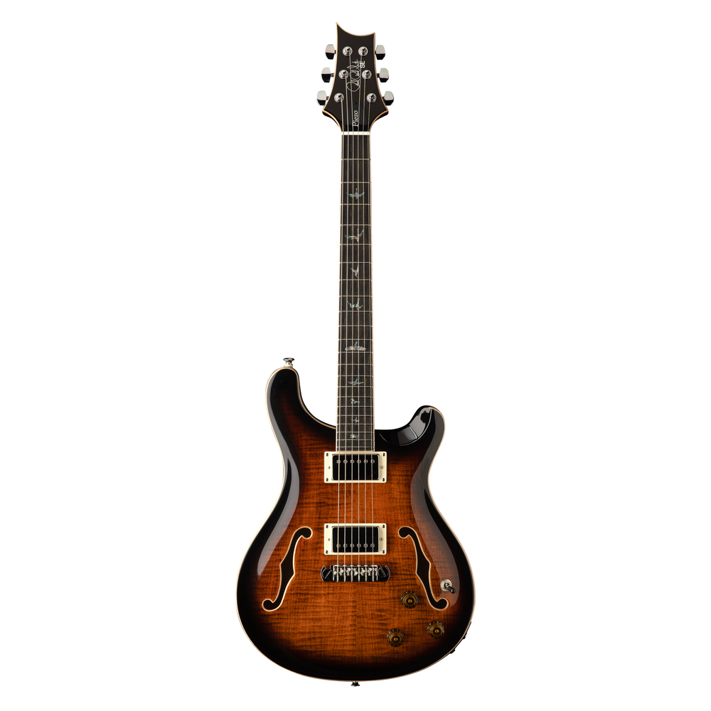 ProAudioStar DJ GEAR INSTRUMENT GEAR LIVE SOUND RECORDING MICROPHONES HEADPHONES ACCESSORIES SOFTWARE LIGHTING BUNDLES Authorized Dealer - Full Warranty PRS SE Hollowbody II Piezo Electric Guitar - Orange Tiger Smokeburst 6-String Semi-Hollow Electric Guitar with Piezo Pickup - Brand New - Description Acoustic and Electric Tones in One The SE Hollowbody II Piezo combines the balanced, clear, resonant tone of a hollowbody instrument with the power and stability of a solid-body electric guitar. Constructed with a maple back and top with mahogany sides, the SE Hollowbody II Piezo offers a light shimmer and snap in an attractive package. The 58/15 LT “S” pickups deliver clarity and balance that sound big and musical in a hollowbody platform. Boasting an LR Baggs/PRS Piezo system, the SE Hollowbody II Piezo provides musicians with the versatility of wielding both acoustic and electric tones in one instrument. The instrument is designed with two discrete volume controls (magnetics and piezo) and output jacks (mix/piezo and magnetics). Players can plug into the “Mix/Piezo” jack and use the individual volume controls to blend the 58/15 LT “S” pickups with the piezo’s acoustic tones. Alternatively, players can plug into the jacks separately, so the guitar can run magnetic pickups into an amp and run the piezo through an acoustic amp or DI into the soundboard. When using the magnetic output jack in isolation, the piezo battery is bypassed completely, acting as a failsafe (in this scenario, the magnetic pickups still work even if the piezo battery has run out of juice). PRS Adjustable 'Piezo' Stoptail Including six individual piezo-equipped saddles, this bridge works with the LR Baggs/PRS proprietary piezo electronics, to effortlessly achieve electric and acoustic sounds in one instrument. PRS-Designed Tuners Designed to PRS's specifications, these lightweight tuners provide precise tuning and won't dampen your tone. PRS 58/15 LT “S” “Low turn” pickups with vintage warmth and welcome clarity, designed to PRS’s specifications. Features/Specs Body Body Construction : Hollowbody Top Wood : Maple Veneer : Flame Maple Middle Wood : Mahogany Back Wood : Maple Neck Number of Frets : 22 Scale Length : 25" Neck Wood : Mahogany Neck Construction : Multi-Ply Truss Rod : PRS Double-Acting Neck Shape : Wide Fat Neck Depth at the 1/2 Fret : 7/8" Neck Depth at the 12 1/2 Fret : 61/64" Neck Width at the Nut : 1 11/16" Neck Width at the Body : 2 1/4" Fretboard Wood : Ebony Fretboard Radius : 10" Fretboard Inlay : Birds Headstock Logo : Signature "SE" Neck/Body Assembly Neck/Body Assembly Type : Set Hardware Bridge : PRS Adjustable 'Piezo' Stoptail Tuners : PRS Designed Tuners Hardware Type : Nickel Nut : Bone Truss Rod Cover : "Piezo" Electronics Treble Pickup : 58/15 LT "S" Bass Pickup : 58/15 LT "S" Controls : Magnetic Volume, Piezo Volume, and Tone Control with 3-Way Toggle Pickup Switch Additional Info Strings : PRS Classic 10-46 Tuning : Standard (6 String): E, A, D, G, B, E We are authorized dealers for all these brands. Click a logo to see our listings. ProAudioStar is also not responsible for any taxes, local duties, or fees outside of the USA and those are not included in the sale price or ship charge. If an item is refused by the buyer, ship costs to and from the destination in which the item was shipped to are not refunded. Please note the cost of return shipping is usually double of what the original ship cost. Shipping is not free to HI, AK, and PR. FREE SHIPPING ONLY TO THE LOWER 48 STATES. We provide free shipping to the contiguous 48 United States, on most items. Shipping fees to ALL OTHER LOCATIONS will be calculated individually and added to customer invoices. ProAudioStar is also not responsible for any taxes, local duties, or fees outside of the USA and those are not included in the sale price or ship charge. In the event that the customer refuses a shipment, all shipping costs to and from the country or State in which the item was shipped to are not refunded. Please note, in some cases return shipping can cost as much as double the original ship cost. We operate a 30-day return period. Items must be returned with all original packaging as well as all included items. Items that are not returned in original, resalable condition are subject to a 15% restocking fee. We charge a 15% restocking fee on returned items only if the item is clearly used and or the packaging is tarnished. A 10% re-stock is more likely if the unit comes back in mint condition. The ship cost we paid to ship your item will be deducted as well. In some cases restock fees and ship costs can be applied as a store credit. We will exchange a defective unit for the same unit within the 30-day period. After that period, you will have to work directly with the manufacturer for warranty service. Items that can not be returned include: software, units with contents or packaging that is damaged/missing, and items that are considered for personal use (such as earphones, headphones, microphones, instrument mouthpieces, harmonicas or other items that you wouldn't want to purchase if someone else had previously used them). Also, Items which we do not normally stock (i.e. "Special Orders", discontinued products, close-outs, used products, etc.) are non-returnable. We strongly suggest that you check your order after receiving it to be sure that it is in proper working order. Please contact us for a Return Authorization before returning any items.