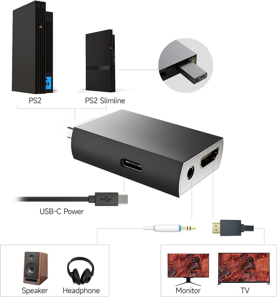 [Fantastic Experience] Using the brand new decoder chip and advanced signal processing with great precision, colors and resolution, MAYFLASH PS2 to HDMI Converter will ensure you a fantastic experience. [Plug and Play] No need extra settings or drivers, just Plug and Play! [No Lag] MAYFLASH PS2 to HDMI Converter outputs video and audio in full digital HDMI format, no transmission loss. [Full Compatibility] Compatible with ALL PS2 display modes (480i, 480P, 576i). A high quality USB A to C Cable is included in the packaging.