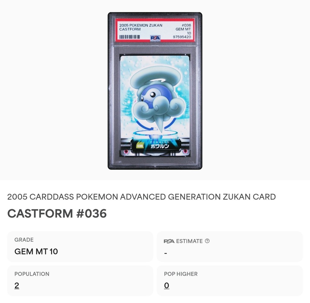 PSA 10 GEM MINT Castform #036 Carddass Zukan Advanced Gen. Bandai Pokémon POP 2. POP 2 as of 11/29/24. Please reach out with any questions and we would be happy to assist you. Returns are not accepted. You will receive the exact graded card pictured. Please see high resolution scans. Purchase of this item signifies agreement that Grade, Actual Condition and expected standards all match. Please see PSA website for more info. Shipping info: All graded cards are shipped securely in bubble mailer and cardboard box; regardless of price. Please reach out with any concerns before contacting ebay and we'd be happy to assist you. Please note that due to inventory accuracy, purchases will not be cancelled before or after shipping. Please reach out with any questions before purchase and we would be happy to assist you.