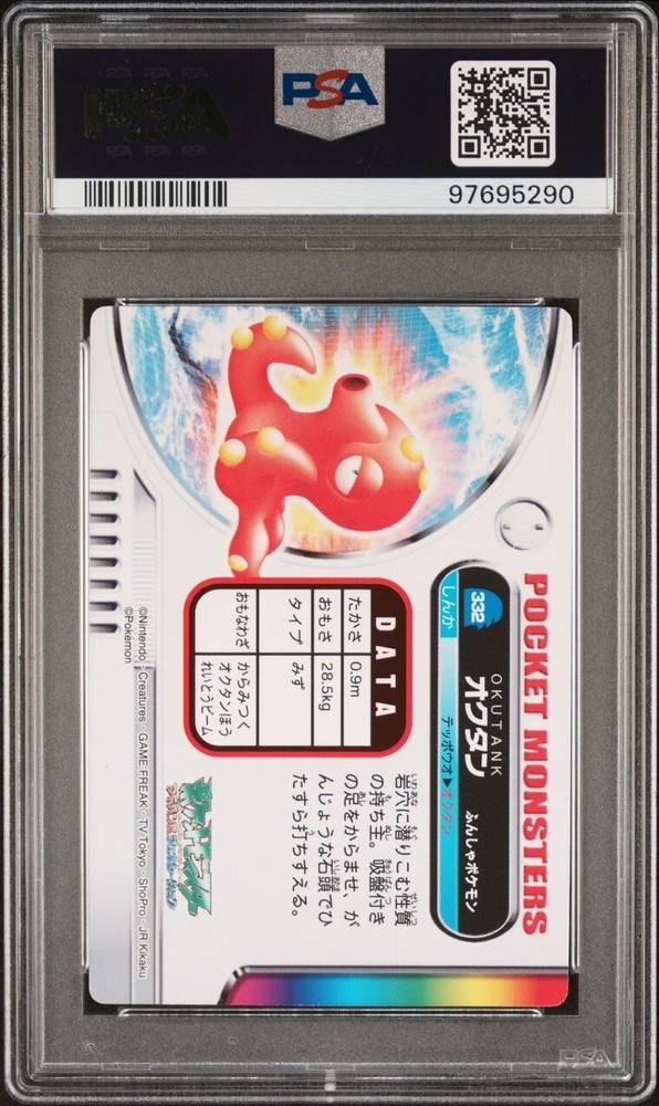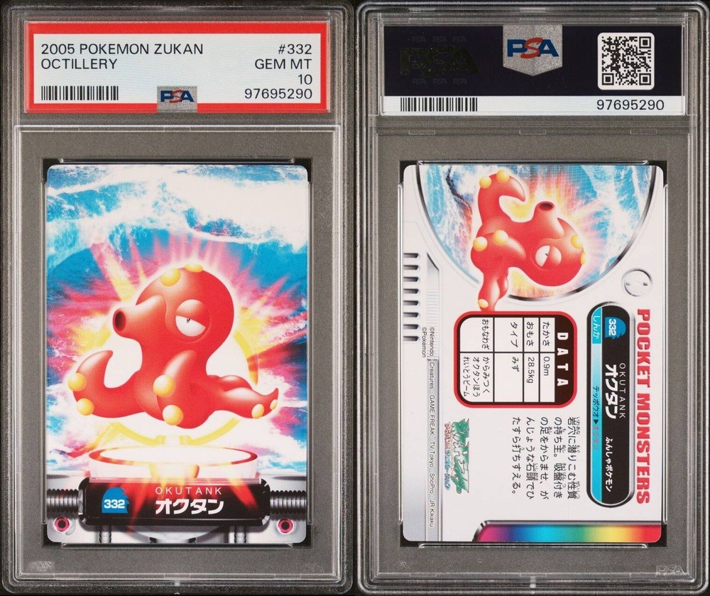 PSA 10 GEM MINT Octillery #332 Carddass Zukan Advanced Gen. Bandai Pokémon POP 1. POP 1 as of 11/27/24. Please reach out with any questions and we would be happy to assist you. Returns are not accepted. You will receive the exact graded card pictured. Please see high resolution scans. Purchase of this item signifies agreement that Grade, Actual Condition and expected standards all match. Please see PSA website for more info. Shipping info: All graded cards are shipped securely in bubble mailer and cardboard box; regardless of price. Please reach out with any concerns before contacting ebay and we'd be happy to assist you. Please note that due to inventory accuracy, purchases will not be cancelled before or after shipping. Please reach out with any questions before purchase and we would be happy to assist you.
