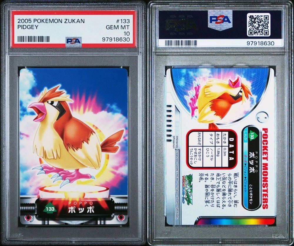 PSA 10 GEM MINT Pidgey #133 Carddass Zukan Advanced Gen. Bandai Pokémon POP 2. POP 2 as of 11/29/24. Please reach out with any questions and we would be happy to assist you. Returns are not accepted. You will receive the exact graded card pictured. Please see high resolution scans. Purchase of this item signifies agreement that Grade, Actual Condition and expected standards all match. Please see PSA website for more info. Shipping info: All graded cards are shipped securely in bubble mailer and cardboard box; regardless of price. Please reach out with any concerns before contacting ebay and we'd be happy to assist you. Please note that due to inventory accuracy, purchases will not be cancelled before or after shipping. Please reach out with any questions before purchase and we would be happy to assist you.