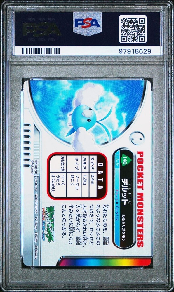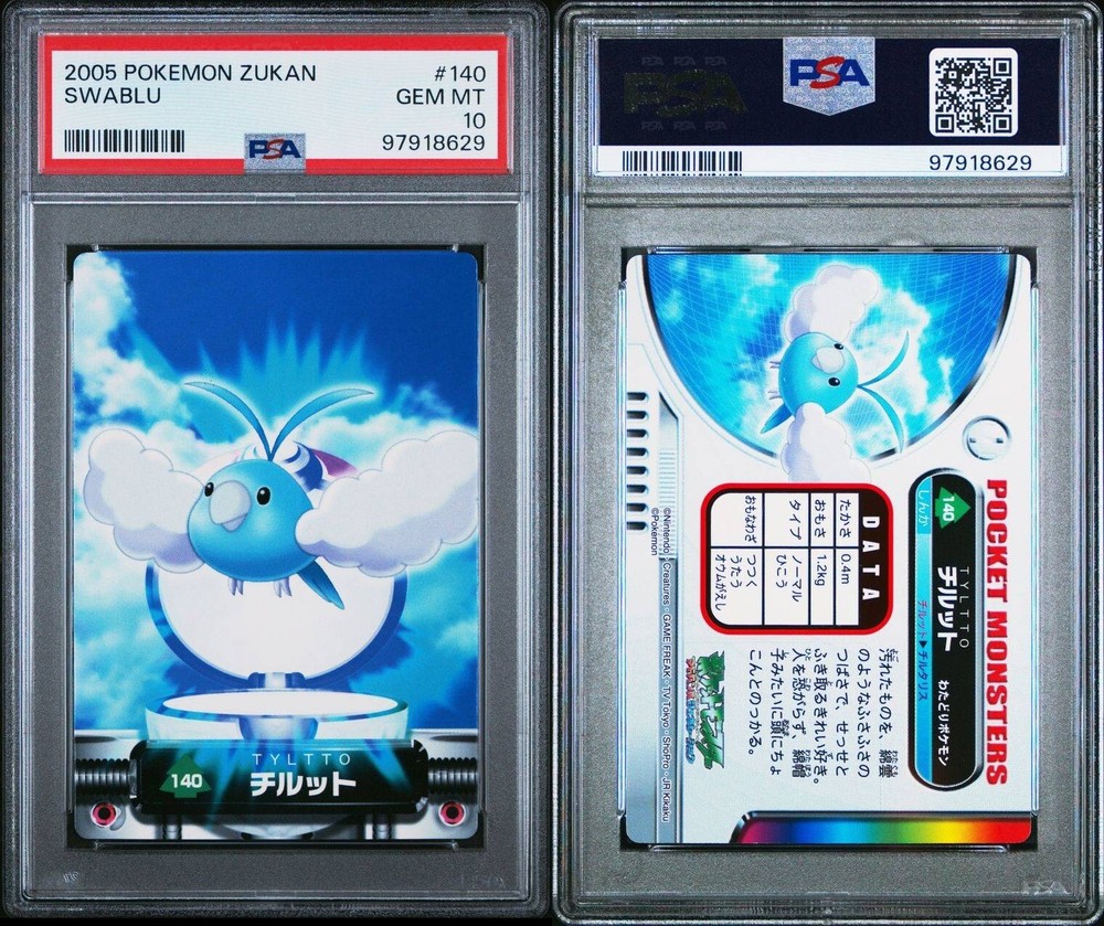 PSA 10 GEM MINT Swablu #140 Carddass Zukan Advanced Gen. Bandai Pokémon POP 2. POP 2 as of 11/27/24. Please reach out with any questions and we would be happy to assist you. Returns are not accepted. You will receive the exact graded card pictured. Please see high resolution scans. Purchase of this item signifies agreement that Grade, Actual Condition and expected standards all match. Please see PSA website for more info. Shipping info: All graded cards are shipped securely in bubble mailer and cardboard box; regardless of price. Please reach out with any concerns before contacting ebay and we'd be happy to assist you. Please note that due to inventory accuracy, purchases will not be cancelled before or after shipping. Please reach out with any questions before purchase and we would be happy to assist you.