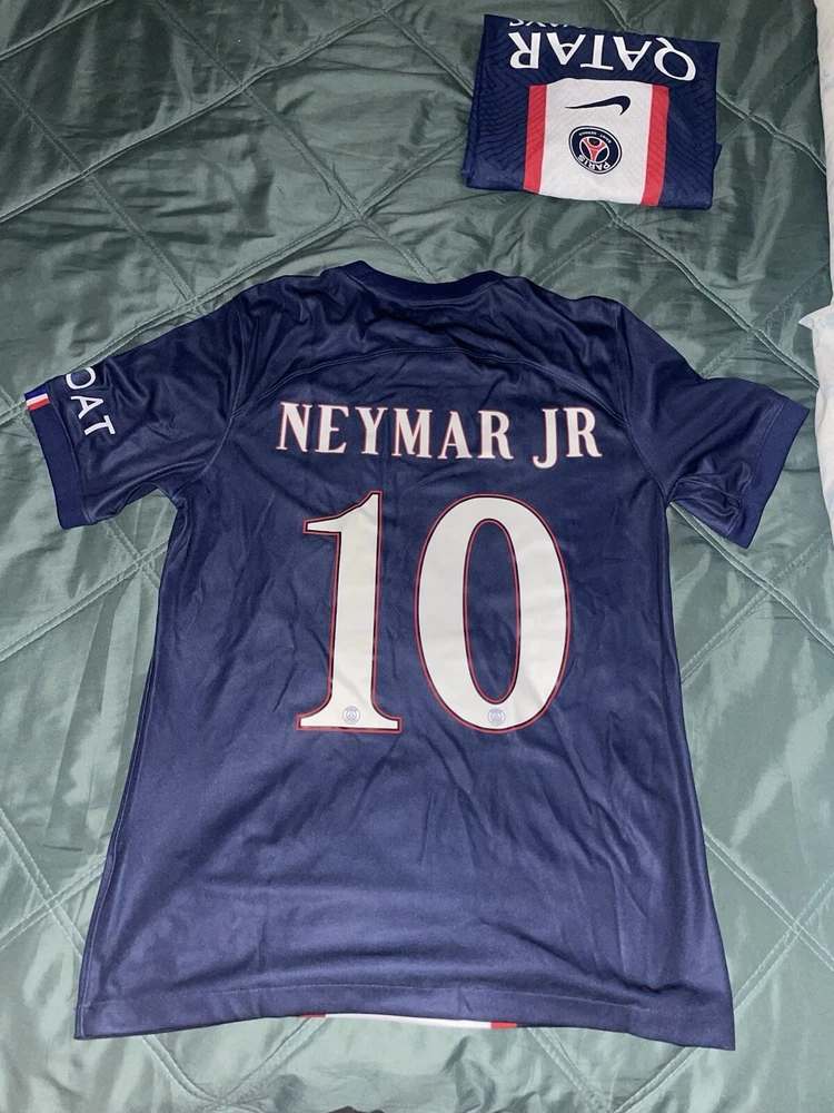 Holidays are coming up and what better way to purchase someone close to you their favorite team jersey! If they are a PSG or even better a Neymar Jr fan this is the Jersey fire them! NEYMAR JR PSG 22/23 CHAMPIONS LEAGUE EDITION JERSEY! BRAND NEW NEVER WORN! Official tags were removed, I can 100% provide official purchase of jersey if needed, I am willing to negotiate a fair price.