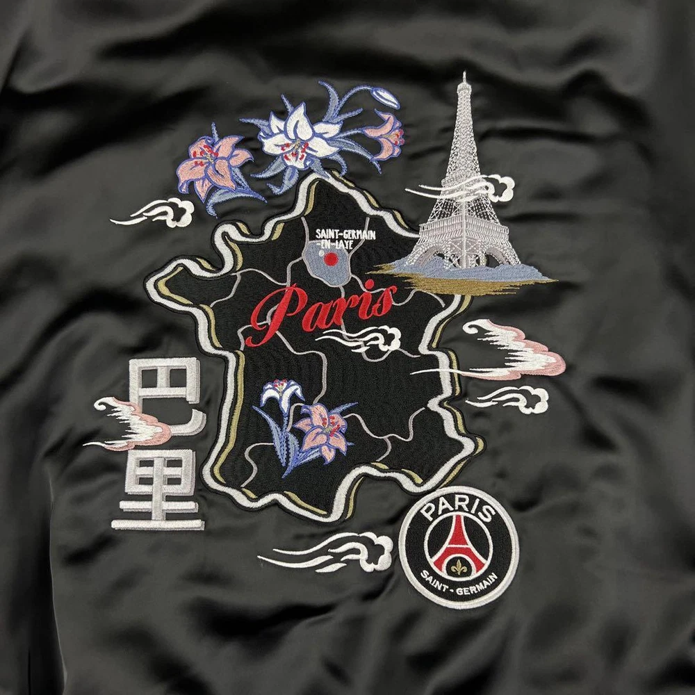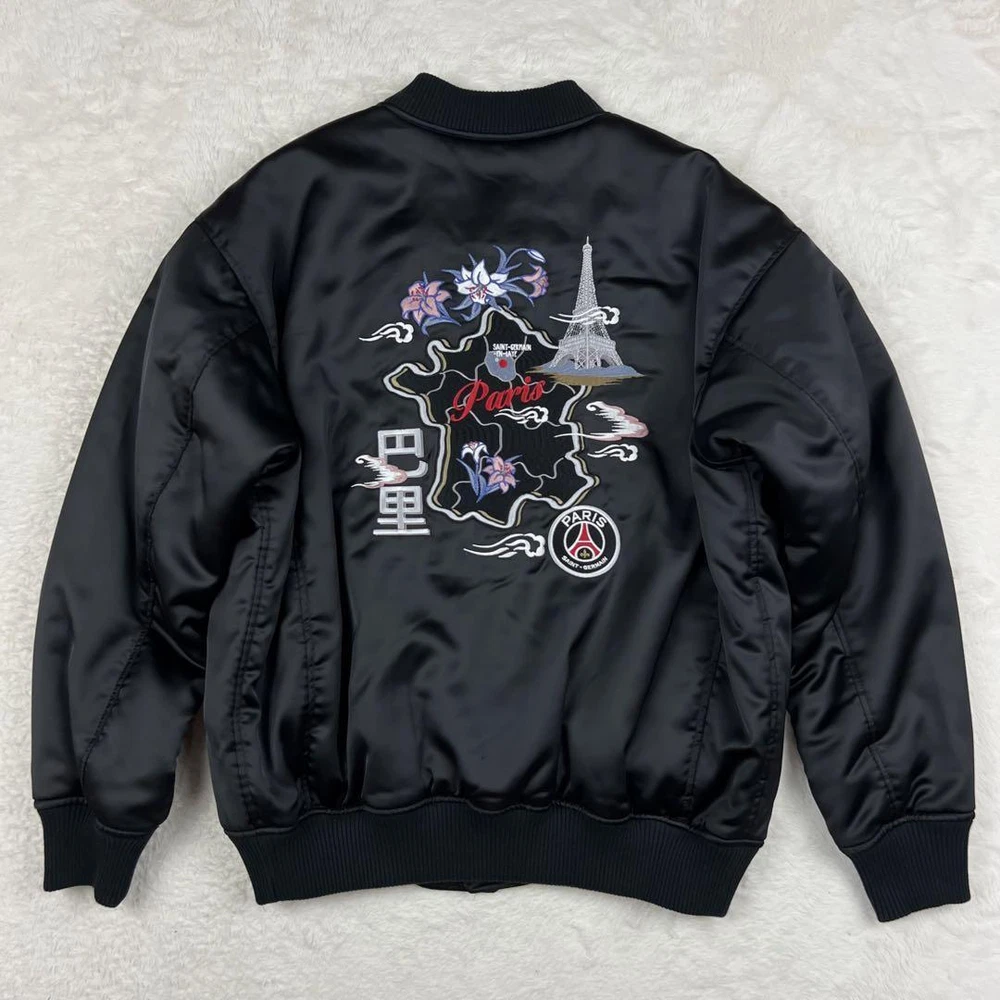 PSG Paris Saint-Germain Sukajan Black Embroidery Jacket Map Eiffel Tower M