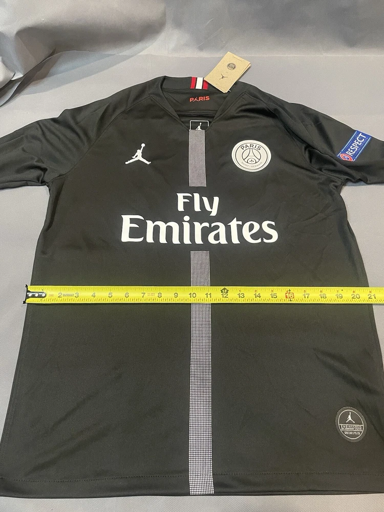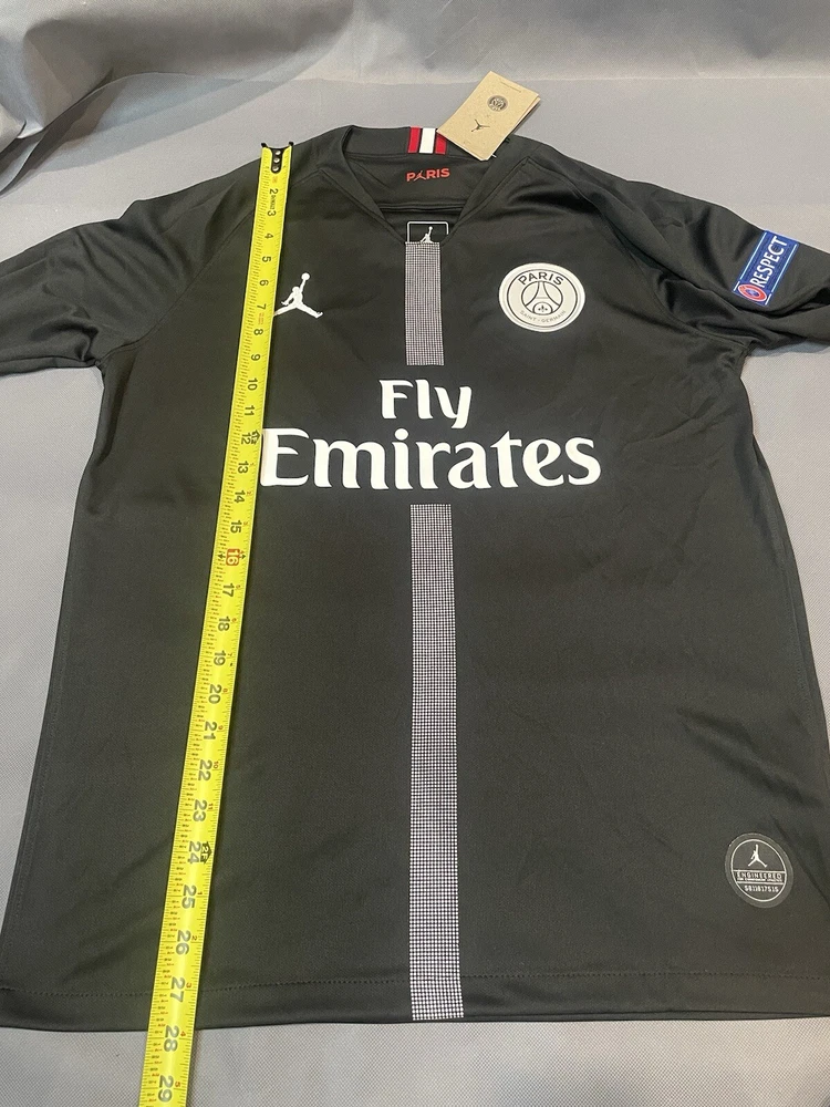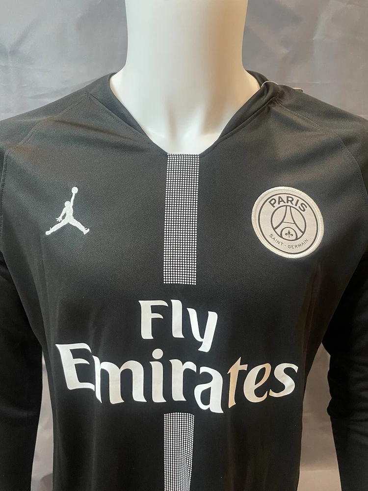 Get ready to show your support for your favorite soccer team with this stylish PSG Retro Away Jersey. This black long sleeve jersey features the iconic Paris Saint-Germain logo and Neymar Jr. #11 printed on the back. Made for large mens size, this jersey is perfect for any soccer enthusiast. With a capacity of 8 oz, this jersey is perfect for wearing during games or as a collector's item. Represent your team with pride and show off your love for soccer with this must-have PSG Retro Away Jersey. Order as soon as possible to receive before holidays if you have any questions lemme know!