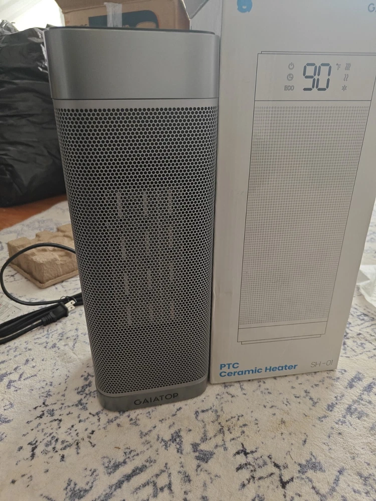 The PTC Ceramic Heater Gaiatop SH-01 is a space heater made of ceramic material. It is designed to provide warmth and heat to a specific area or room. The heater uses a PTC (positive temperature coefficient) heating element to quickly warm up and maintain a constant temperature. It is compact and easy to use, making it a great addition to any home or office.
