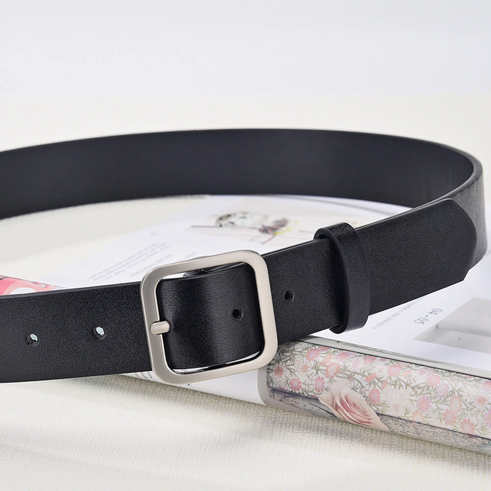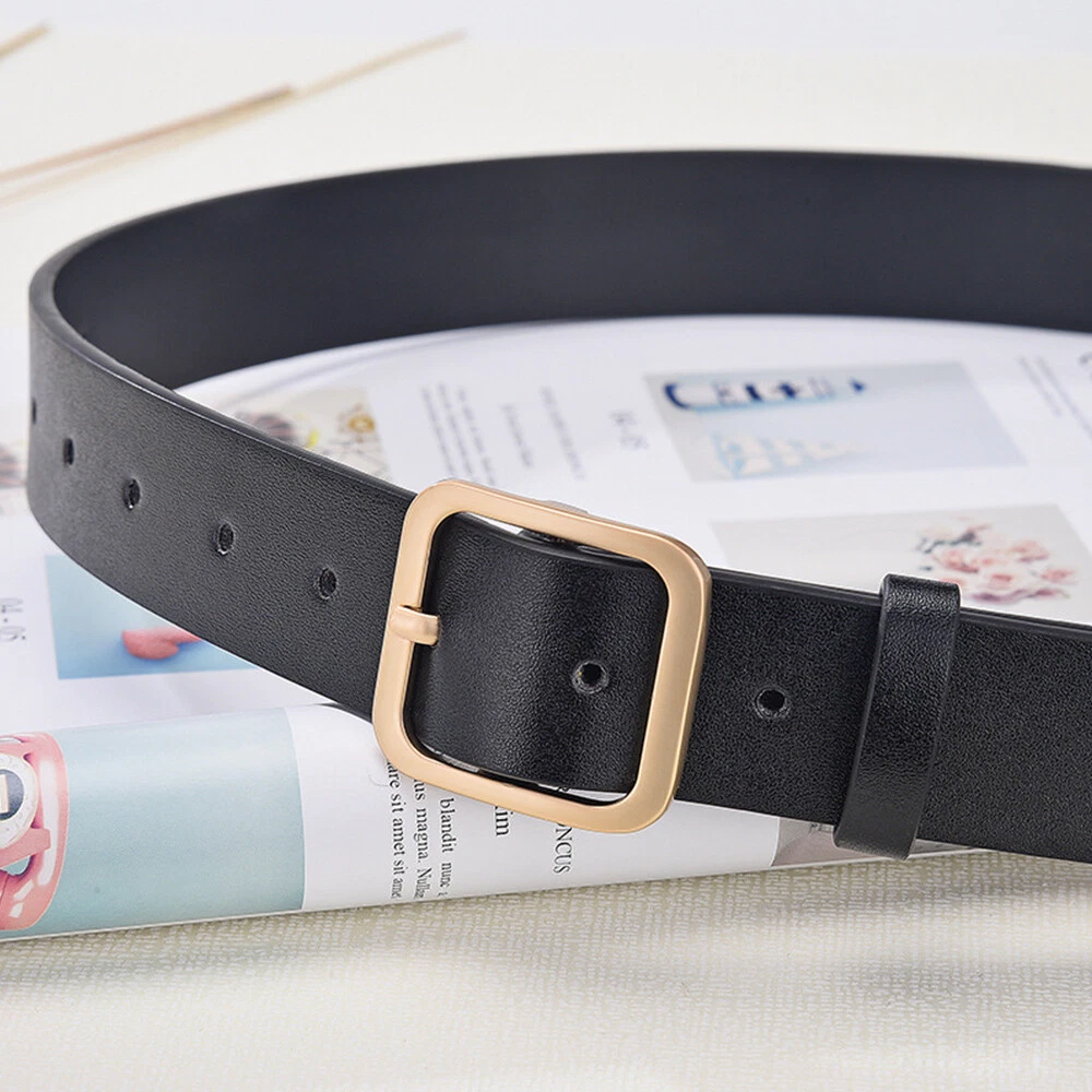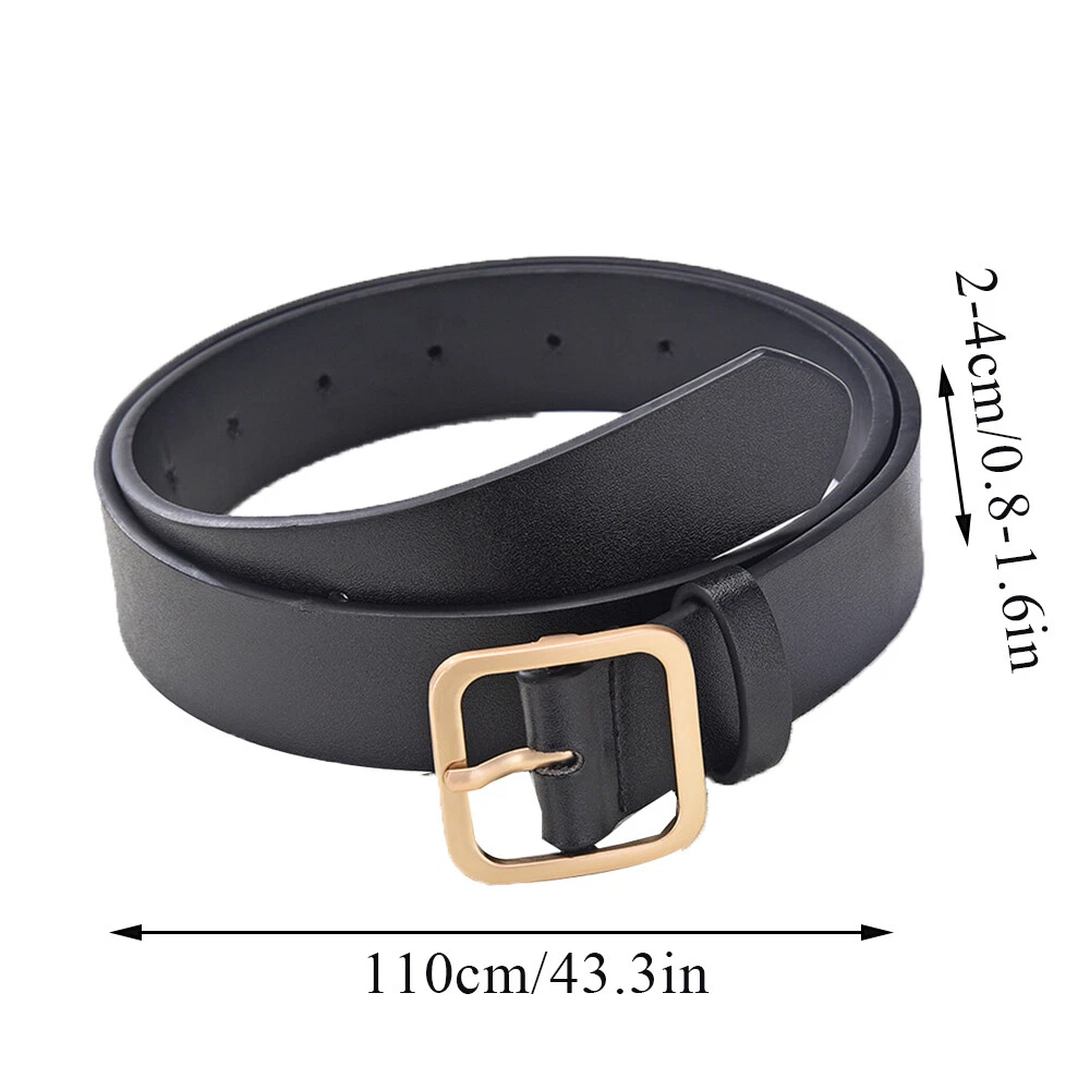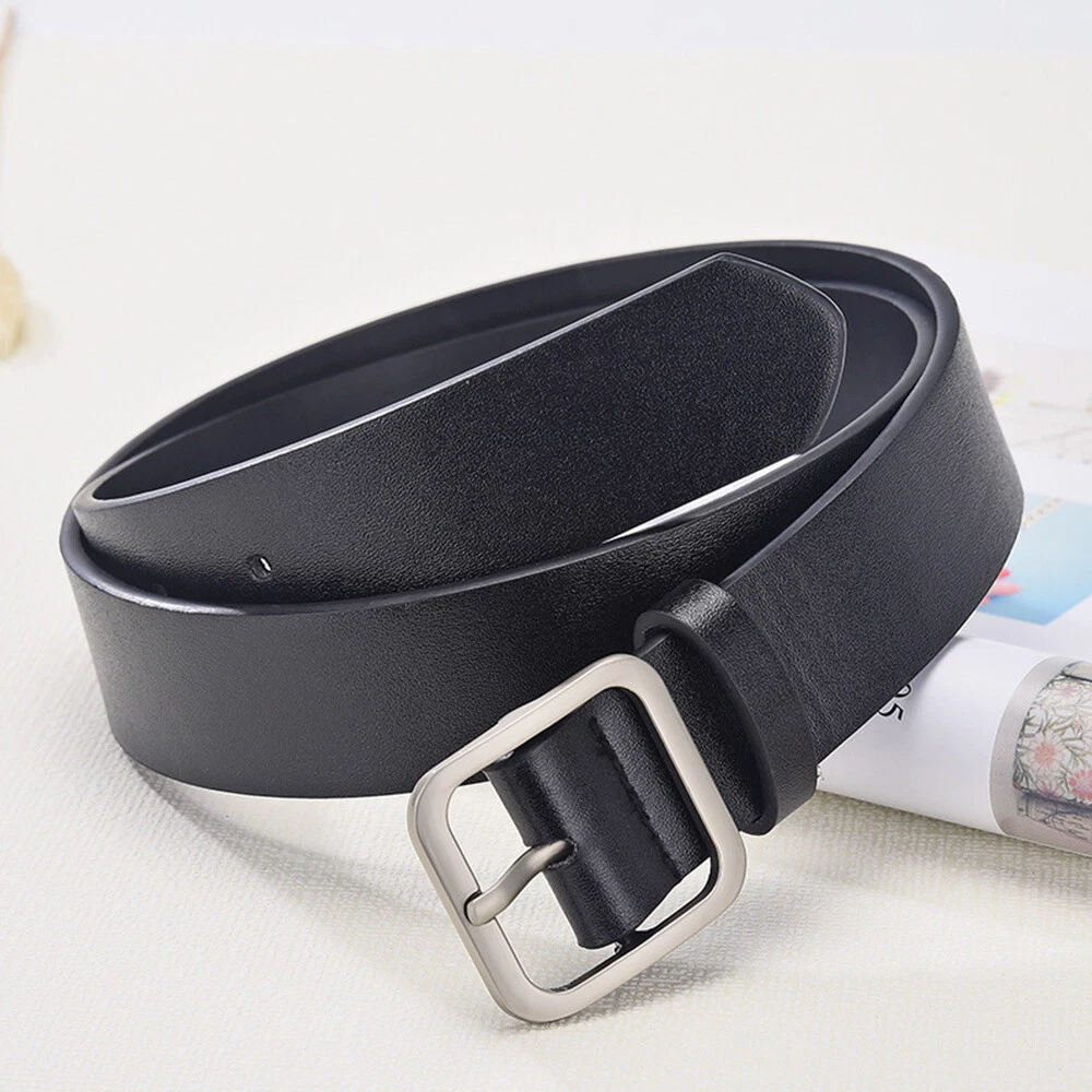 PU Leather Belt Metal Pin Buckle Waist Strap Square Buckle Simple Chic Luxury