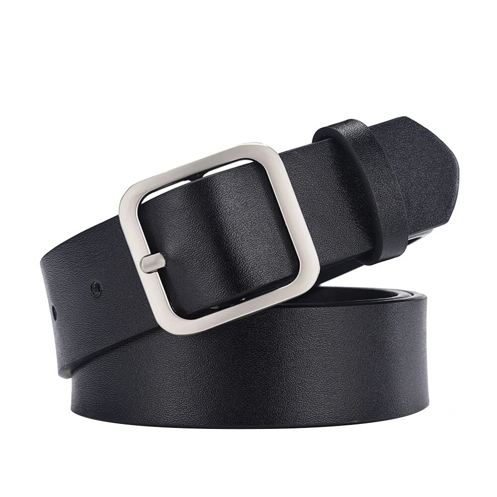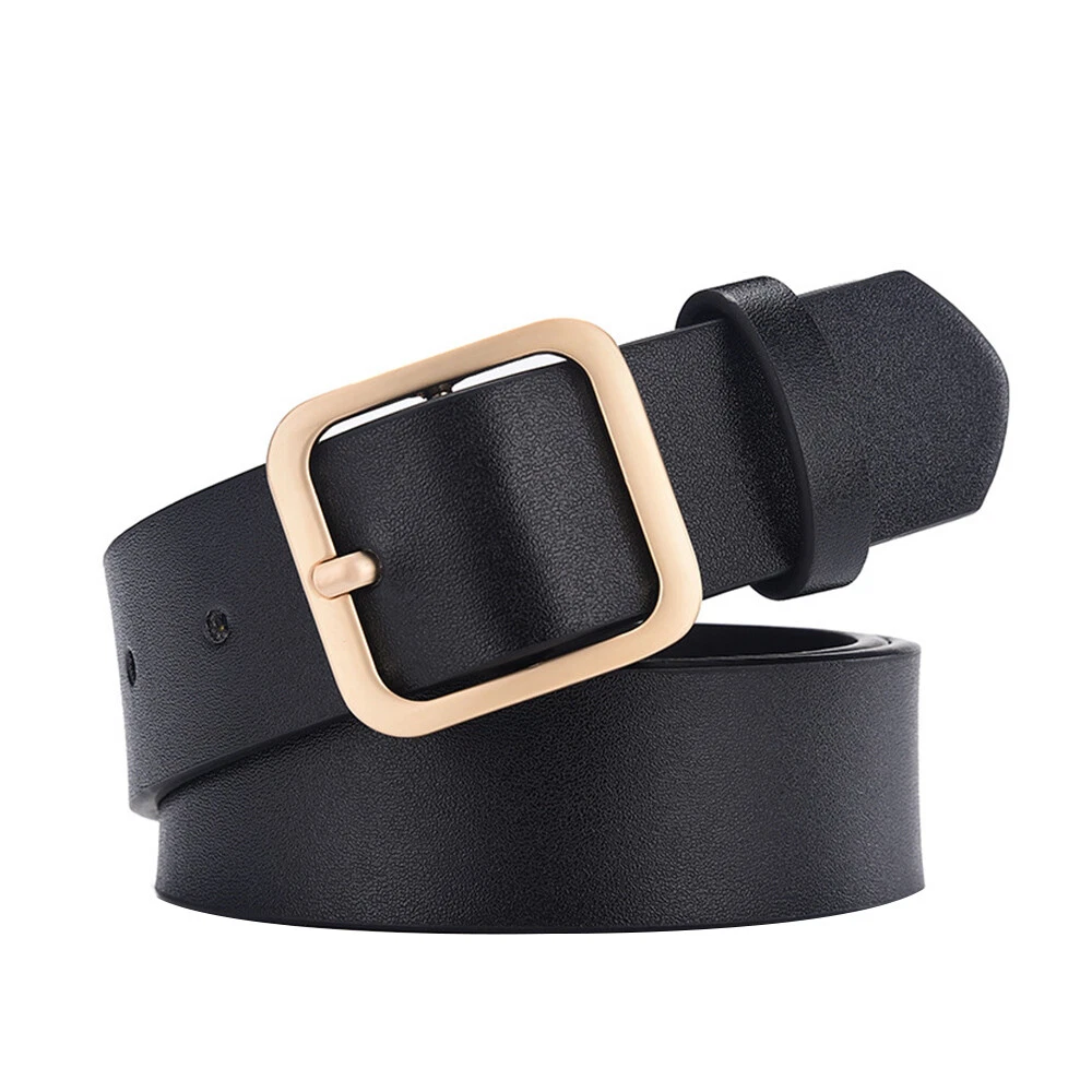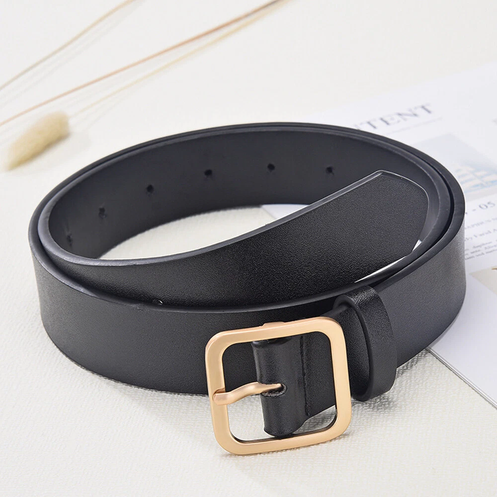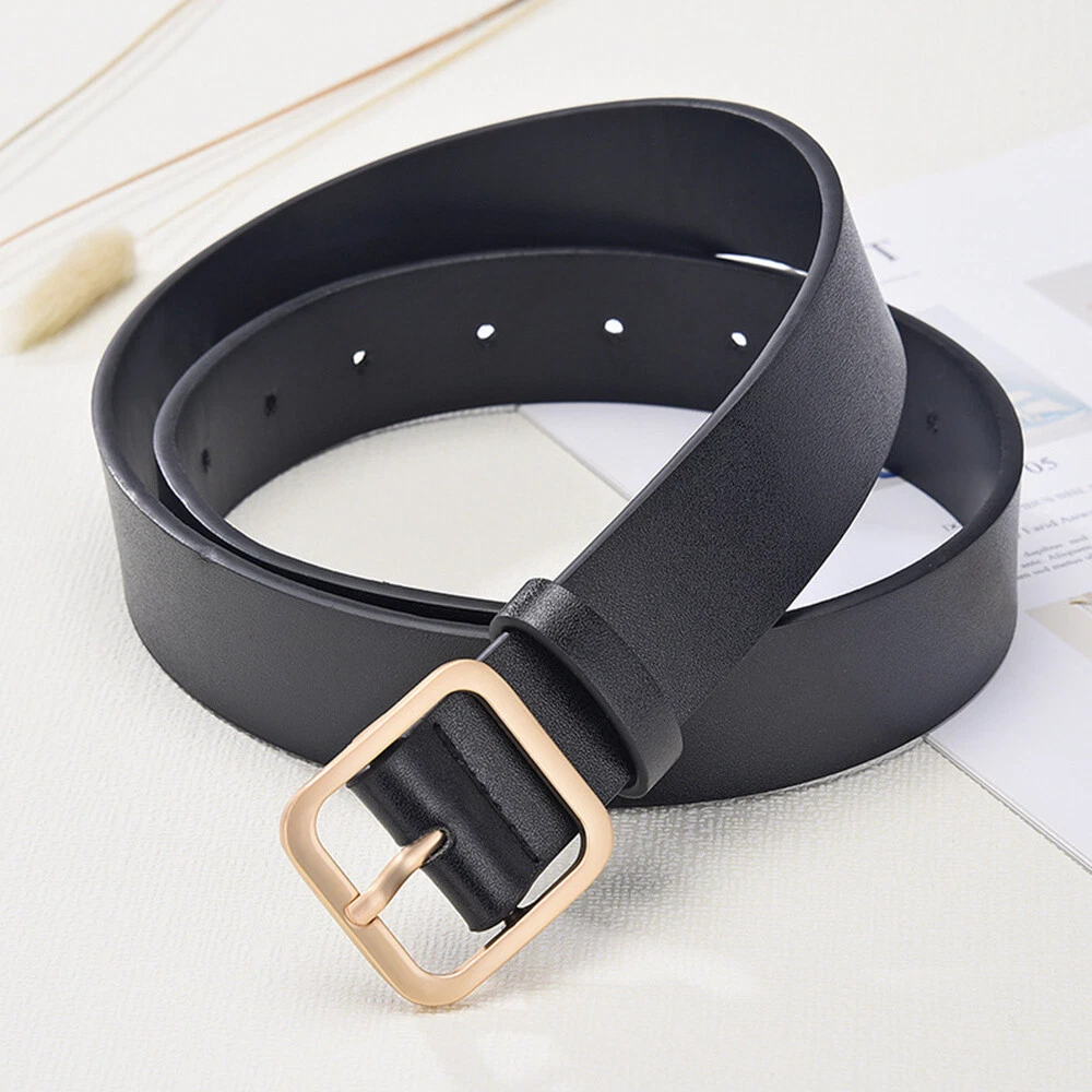 PU Leather Belt Metal Pin Buckle Waist Strap Square Buckle Simple Chic Luxury