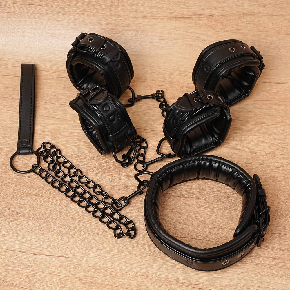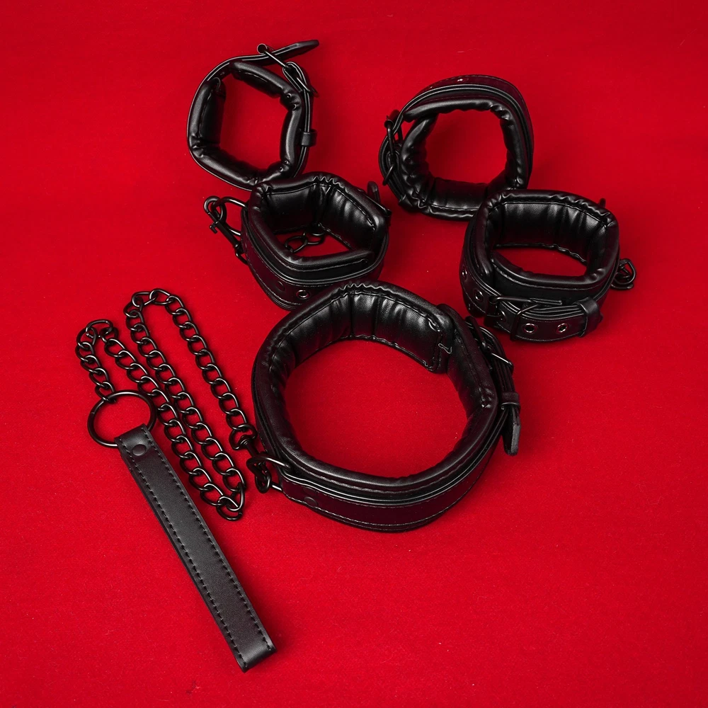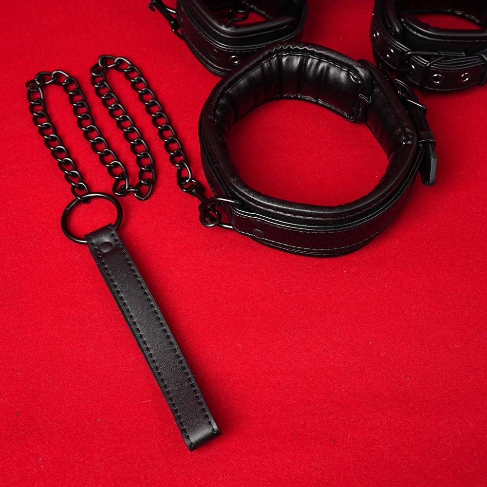 Discreet Packing : 1. 100% discreet shipping guarantee on package and no wirting on the package. 2. Nothing written on the packaging or label - It is impossible to tell what is inside the packaging. Feature: Condition:100% Brand New Size: free size fits for most Material: Good quality PU Leather/Real leather Color: Black(As picture shown) The Chains on the cuffs are all removable. Completely safe and entirely satisfying to the touch Healthy and non-toxic products. Size: Handcuffs Length: 23cm, adjustable: 16-26cm Anklecuffs Length: 28cm, adjustable: 21-31cm The metal chain between cuffs is about 15cm long. Collar Length: 39cm, adjustable: 31-43cm Traction chain length of about 58cm, the handle is about 16cm long. Notes: 1. Due to the difference of light and screen setting, The color of the object may be slightly different from the images. 2. Manual measurement, for measuring methods and technique is different, there may be 1-3 cm error. 3. To protect your privacy, all items will be carefully packed in normal packaging without return address or labeling ambiguous content. Contact: Please contact us first if you have any questions. Thank you!