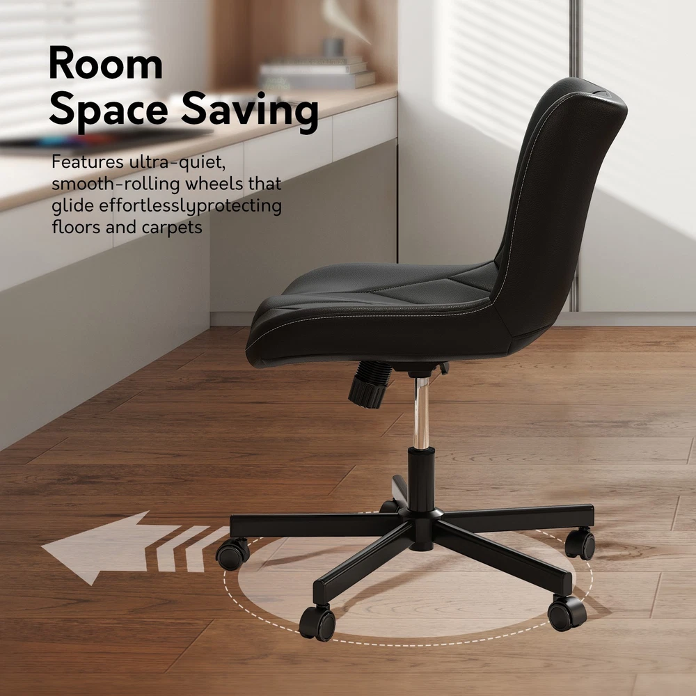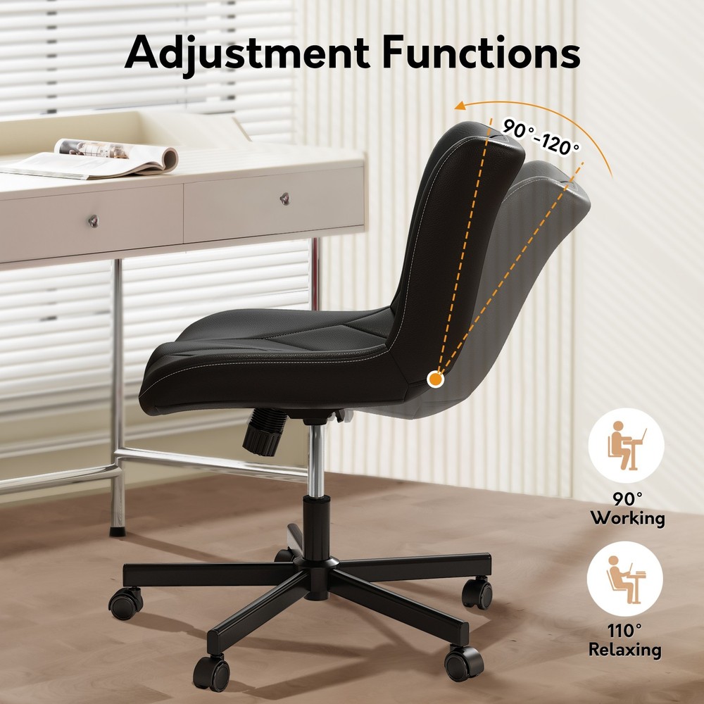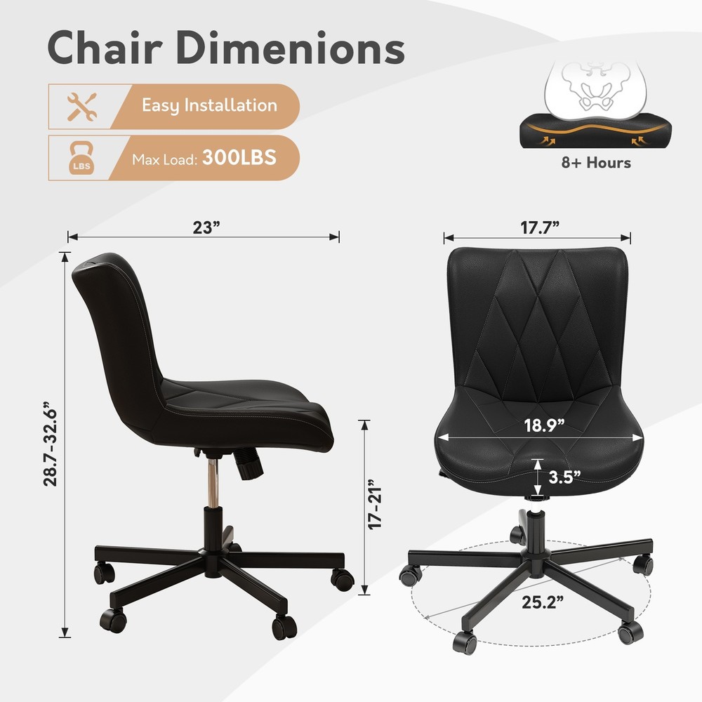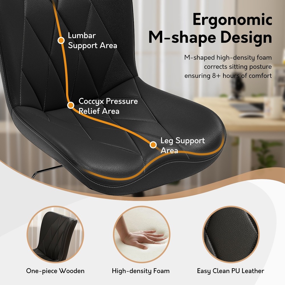 Features: Ergonomic M-Shape Design — Contoured backrest provides lumbar, coccyx, and leg support to maintain healthy posture during long hours. High-Density Foam Cushion — 3.5" thick padded seat with resilient foam ensures 8+ hours of pressure-free comfort. Adjustable Height & Tilt — Seat height adjusts from 17" to 21" and tilts from 90° to 110° with tension control knob. Smooth Mobility — 360° swivel base with five durable caster wheels allows easy movement on any surface. Stylish PU Leather — Sleek white PU leather is waterproof, easy to clean, and adds a modern touch to your workspace Product Details: Overall Dimensions: 23"D × 17.7"W × 28.7"-32.6"H Seat Size: 18.9"W × 17"D × 3.5" thick Seat Height: 17"-21" adjustable Back Height: 15.7" Weight Capacity: 300 lbs Material: PU leather, High-density foam, Metal base On Sep 11, 2025 at 23:52:05 PDT, seller added the following information: