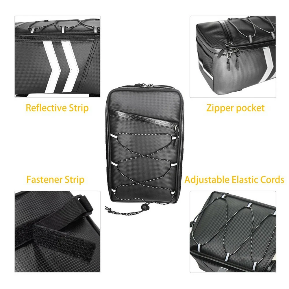 Product Description Bicycle Rear Seat Bag PU Leather Waterproof 9L Large Capacity Storage Luggage Bag Motorcycle Tool Tail Bag Features: Made of water-resistant PU material and water-resistant zippers,durable and practical. 9L large capacity features on a main compartment with multiple pockets,front zipper pocket and adjustable elastic cords. Safe reflective strap around the bag,ensures your safety when riding at night. Durable fastener straps attaching on the bike and thin protective thin foam,provide more stable during cycling. (NOTE:Please add some protection for valuables.) Equipped with a rain cover,protects from dirt,sand,water,rain and snow. Specification: Material: PU Capacity: 9L Size: 30*19*13 cm Weight: 300g Package List: 1* Bag 1* Rain Cover Payment Returns Contact Us Shipping We accept payment by PayPal only ! Payment should be completed within 5 days after buyer places the order,or else an unpaid case will be opened in order to cancel the transaction. If you can not pay in time, please contact us. e-check from PayPal will only be processed once the payment clears. All of the items will be shipped to buyer's EBAY address,please confirm your address on Ebay before you buy.Your order will be usually shipped out the same or next business days once the payment is made and cleared. 30-day Warranty with Exchange for defective, malfunctioned, incorrect or parts-missing items. Please notify us and return the item with all parts and accessories packed and marked "FOR EXCHANGE" within 14 days of receipt. If defective, malfunctioned or parts-missing items are no longer available, a refund may be issued. All returning postage costs will be the responsibility of the buyers under all circumstances. If you encounter any problems about anything, please feel free to contact us and we will do our best to assist you solve the issue. If you are not satisfied in anyway, please feel free to let us know and give us a second chance to correct it before you decide to leave any neutral or negative feedback. Please contact us through eBay link if you have any questions. We will reply you within 24- 48 hours. Please check you spam mail if no response for 48 hours. All items will be checked before packing. All items are new and of high quality. Item will be shipped within 1 business days upon receipt of payment, excluding weekends and public holidays. If to USA,we will ship your order by USPS,it will take about 8-12 working days to you,and you can track it on line. If to other country,we will ship your order by China Post or Singapore Registered Air Mail,it will take about 14-21 working days to you,you aslo can track it on line. Delivery time is about 14-28 business days and it may take up to 8 weeks . Payment We accept payment by PayPal only ! Payment should be completed within 7 days after buyer places the order,or else an unpaid case will be opened in order to cancel the transaction. If you can not pay in time, please contact us. eCHECK from PayPal will only be processed once the payment clears. All of the items will be shipped to buyer's EBAY address,please confirm your address on Ebay before you buy.Your order will be usually shipped out the same or next business days once the payment is made and cleared. Returns 30-day Warranty with Exchange for defective, malfunctioned, incorrect or parts-missing items. Please notify us and return the item with all parts and accessories packed and marked "FOR EXCHANGE" within 14 days of receipt. If defective, malfunctioned or parts-missing items are no longer available, a refund may be issued. All returning postage costs will be the responsibility of the buyers under all circumstances. Contact Us If you encounter any problems about anything, please feel free to contact us and we will do our best to assist you solve the issue. If you are not satisfied in anyway, please feel free to let us know and give us a second chance to correct it before you decide to leave any neutral or negative feedback. Please contact us through eBay link if you have any questions. We will reply you within 24- 48 hours. Please check you spam mail if no response for 48 hours. Shipping All items will be checked before packing. All items are new and of high quality. Item will be shipped within 1 business days upon receipt of payment, excluding weekends and public holidays. If to USA,we will ship your order by USPS,it will take about 7-10 working days to you,and you can track it on line. If to other country,we will ship your order by China Post or Singapore Registered Air Mail,it will take about 14-21 working days to you,you aslo can track it on line. Delivery time is about 14-28 business days and it may take up to 8 weeks . Welcome to our Store ~