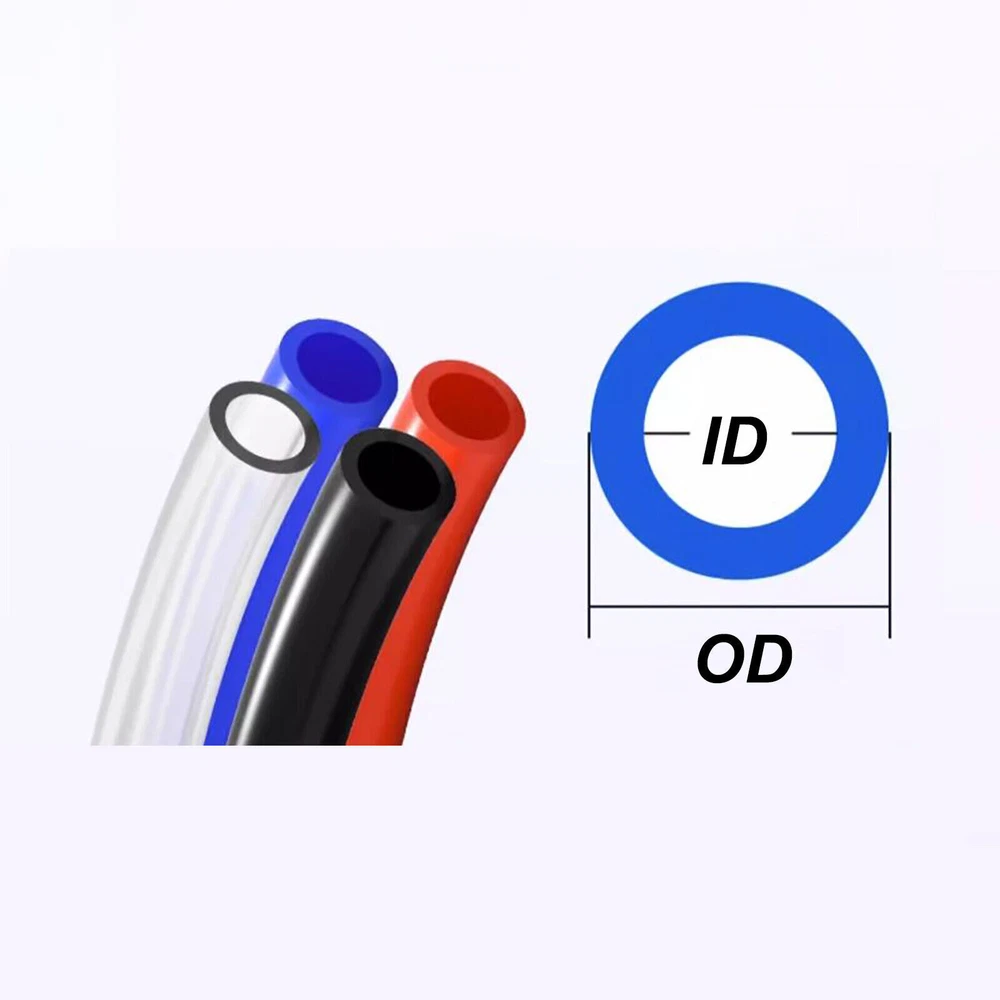 Description: -Pneumatic Polyurethane Pu Air Pipeline -Color: Transparent/Red/Black/Blue -Size: 4mm x 2.5mm/6mm x 4mm/8mm x 5mm/10mm x 6.5mm/12mm x 8mm 14mm x 10mm/16mm x 12mm -Tube Size (OD x ID)=OD x ID -Material: polyurethane (PU). -Fluid: air, water -Burst pressure (20 ° C): 30 bar. -Working pressure: 10 bar. -Working temperature: - 35 ° C -+60 ° C Package include: Accoding to your choice.
