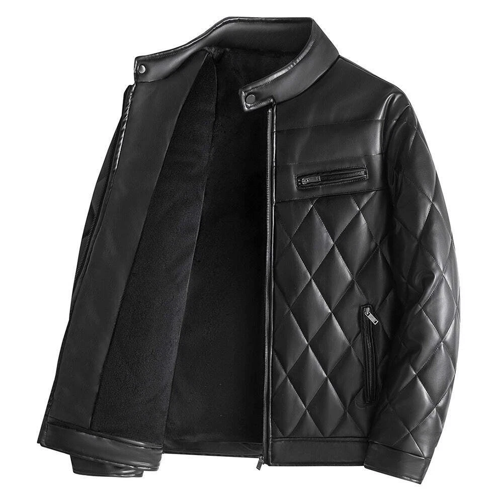 PU leather cotton jacket for men in winter with added velvet and thick leather cotton jacket, Korean version youth motorcycle Style: Basic VolkswagenClothing length: Regular style (50cm