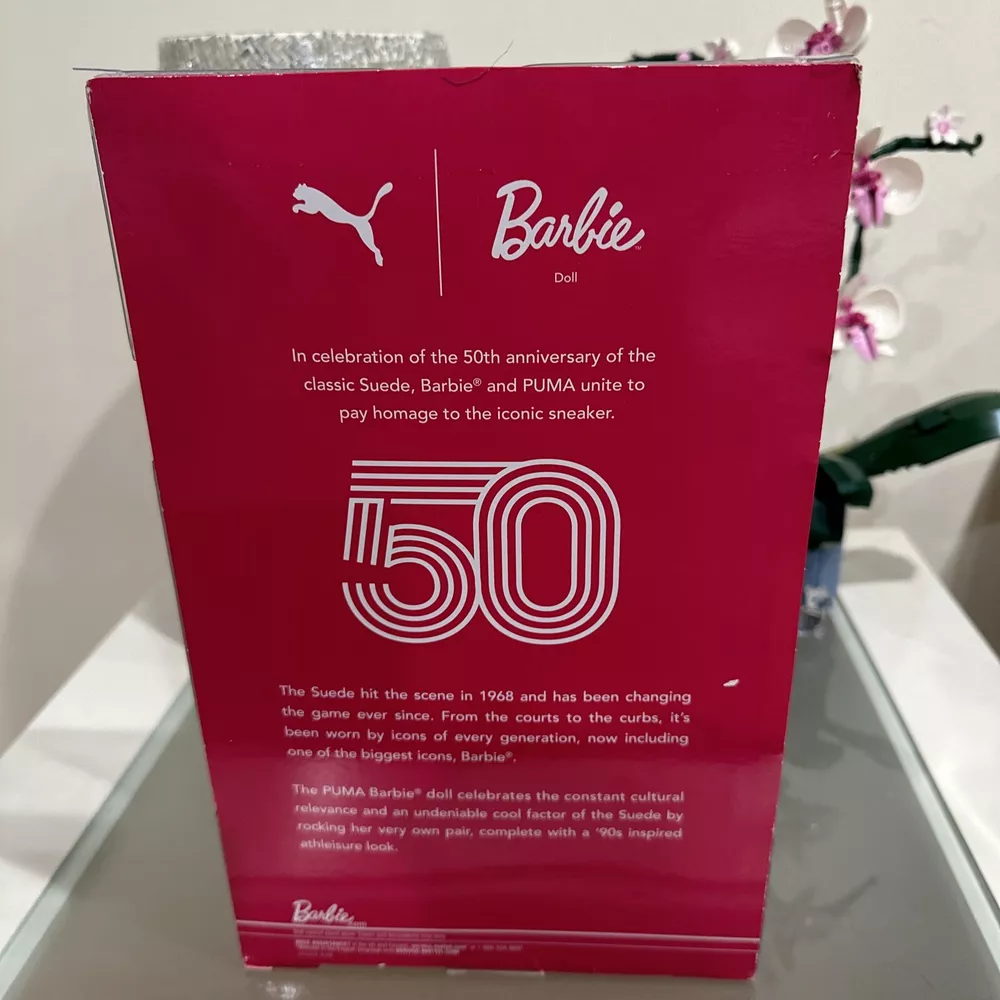 One MIB, NRFB Barbie | Puma collaboration with all her signature accessories. She is part of the Barbie Signature Series and created in 2018 by Mattel. Doll is in mint condition and has never been removed from the box. Interior packaging is in mint condition. Outer packaging has some very slight wear. The attention to detail is amazing; notice her Puma bling! Please note that I do my best to describe all items, especially vintage items. Please view photos and do not hesitate to ask any questions; I am happy to communicate with you. Please consider leaving friendly feedback when you receive your item, and I will do the same for you. Thank you