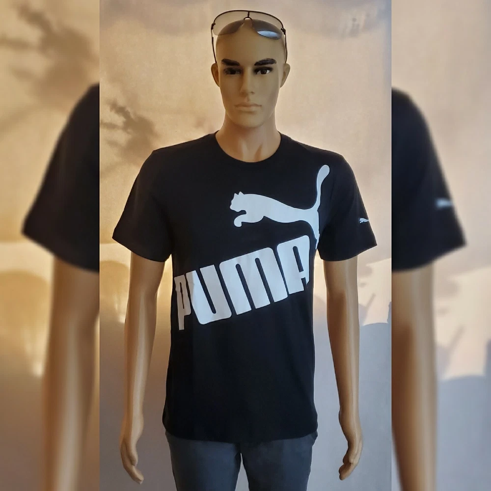 PUMA AUTHENTIC TSHIRT MEN'S CREW NECK SHORT SLEEVE SIZE L BLACK BIG LOGO DESIGN. Condition is New with tags.