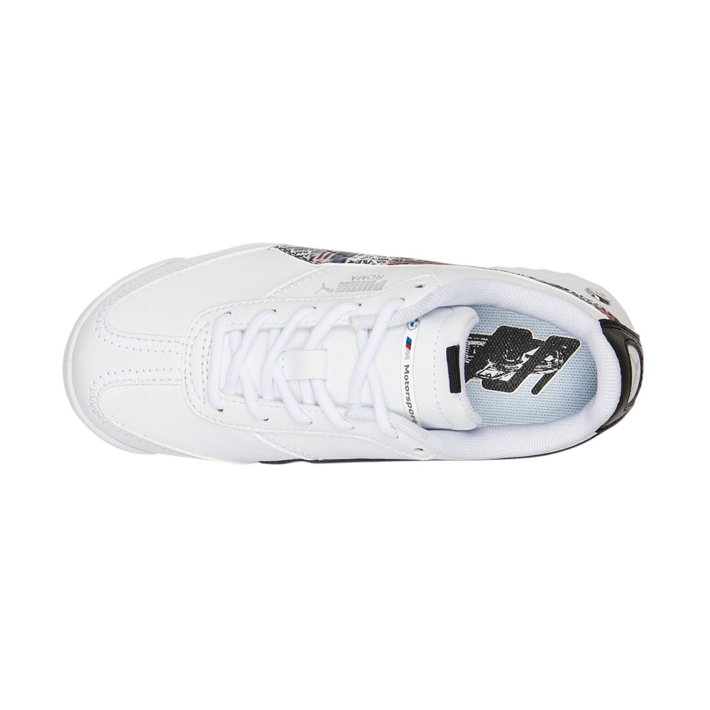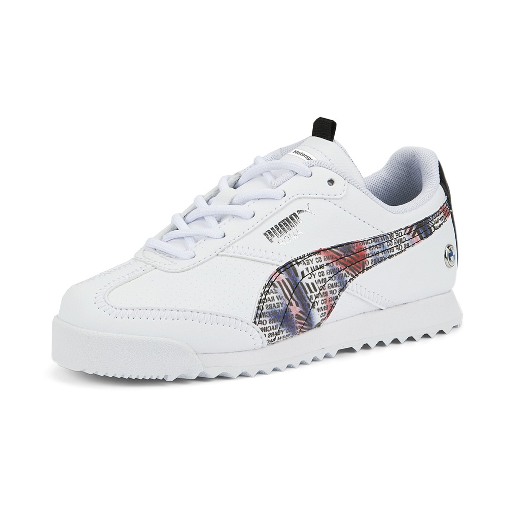BMW M Motorsport Roma Via Lace Up Sneakers (Little Kid-Big Kid) Product Details Synthetic leather upper Lace up closure Ethylene vinyl acetate midsole Rubber outsole Color: Puma White/Puma Black A classic PUMA silhouette gets a modern motorsport makeover in the BMW MMS iteration of our Roma Via Sneakers. Featuring clean lines, comfort enhancing elements like a padded tongue and orthopedic arch supports, plus urban edge and serious swagger, little ones have all they need to start looking and feeling like the pros. Additional Details Manufacturer Color: Puma White/Puma Black Color: Black, Blue, Red, White Occasion: Casual Gender: Boys Age: Youth Brand: Puma