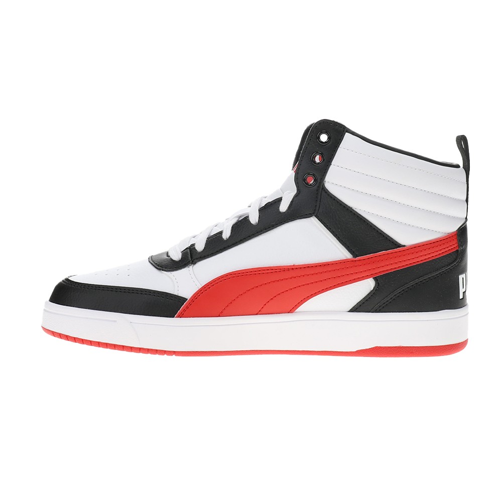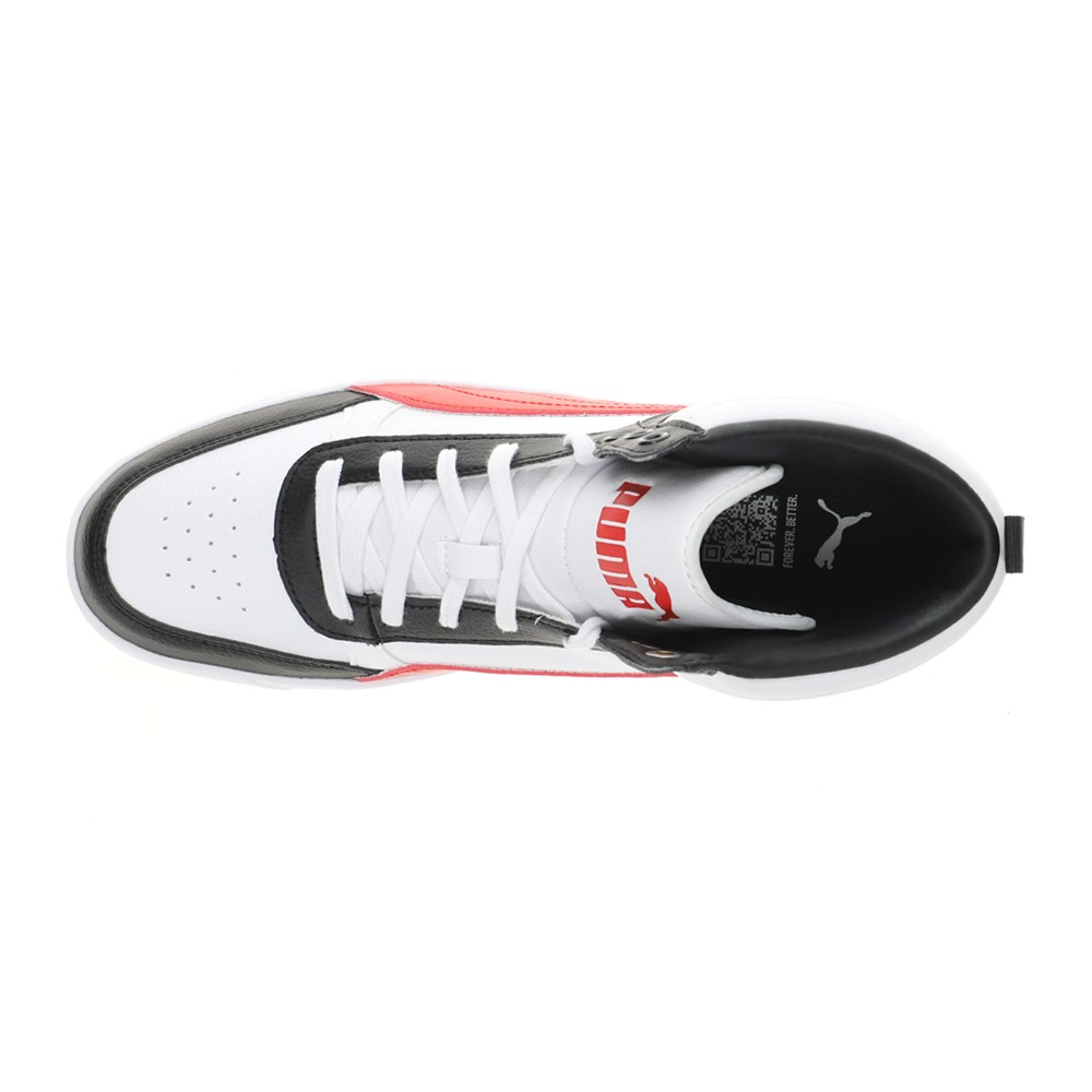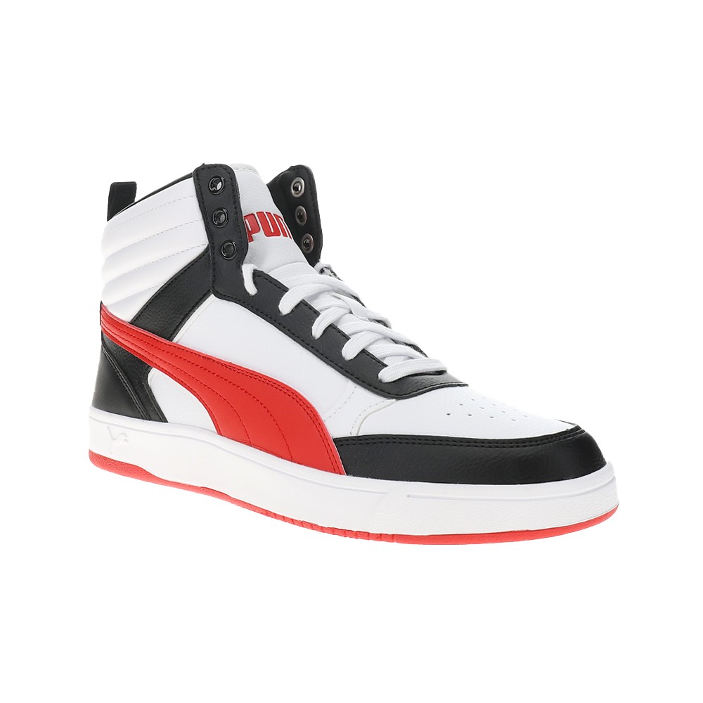 Dribble Mid Lace Up Sneakers Product Details The upper of the shoes is made with at least 20% recycled materials and the bottom is made with at least 10% recycled materials. Regular fit Mid rise Color: Puma White-For All Time Red-Puma Black Sport-inspired shoes for life on the go. The PUMA Dribble Mid sneakers blend sleek style and everyday comfort. Additional Details Manufacturer Color: Puma White-For All Time Red-Puma Black Color: White Occasion: Casual Gender: Mens Age: Adult Brand: