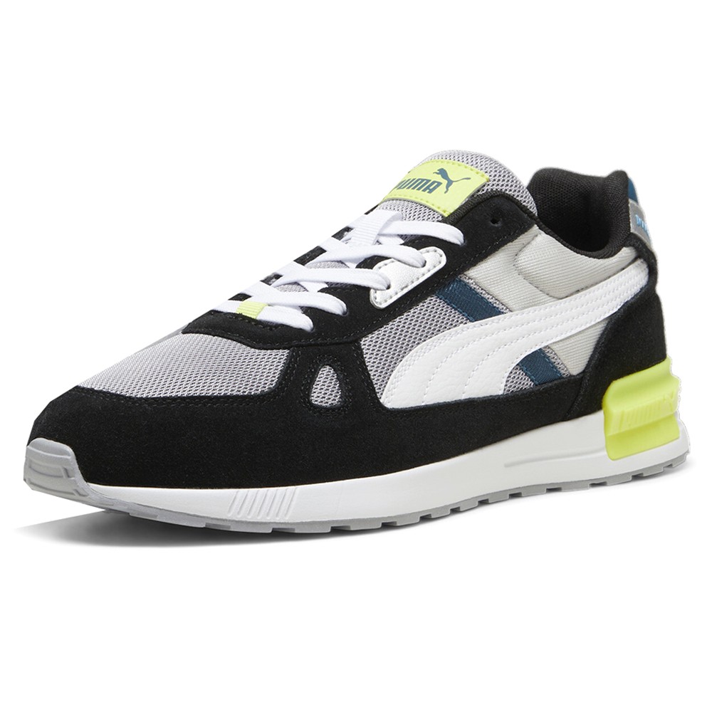 Graviton Pro Lace Up Sneakers Product Details Leather and textile upper Lace closure Padded collar Injection molded ethylen vinyl acetate midsole with sculpted sidewall Rubber outsole Color: Gray Fog/Puma White/Puma Black/Feather Gray Graviton Pro rewinds time and remixes it with a modern twist. Pulling from PUMA’s archive of running silhouettes, it blends layered overlays, bold branding, and a sculpted heel clip for a look that’s equal parts retro and right now. Comfort comes built in with a SoftFoam Plus sockliner and lightweight IMEVA midsole to keep you moving forward. Additional Details Manufacturer Color: Gray Fog/Puma White/Puma Black/Feather Gray Color: Black, Grey Occasion: Casual Gender: Mens Age: Adult Brand: Puma